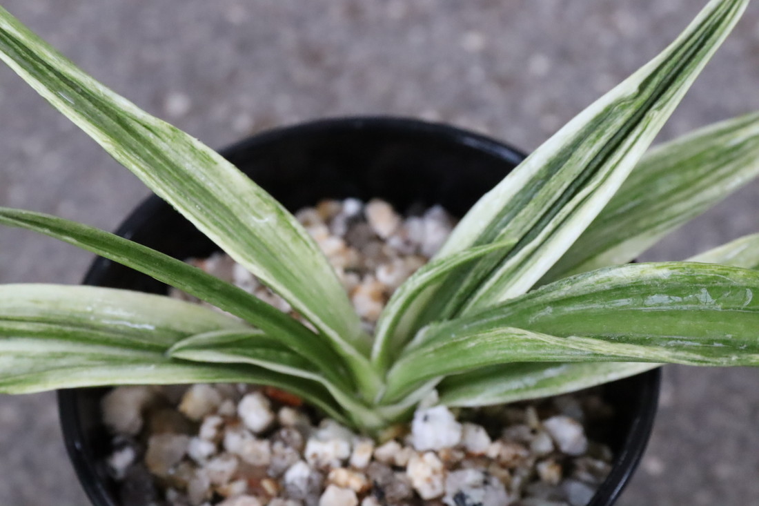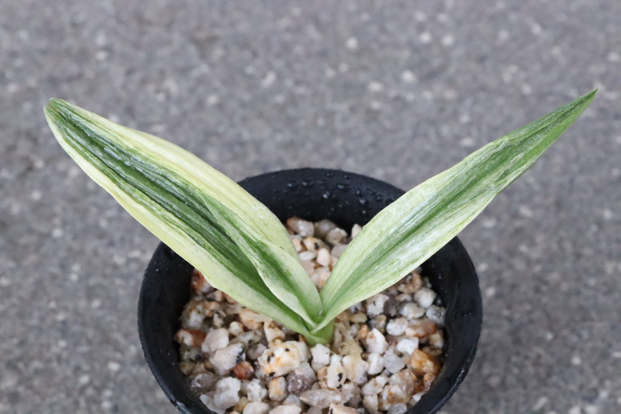 太陽:今の万年青界四天王とも言われる人気品種であり、最高の実親で、岳陽を生み、羅紗の実績は多数。実親もたくさん産んでいる。親が錦麒麟と福寿龍という素晴らしい実親なので、錦麒麟型、福寿龍型のような実生もみせる
