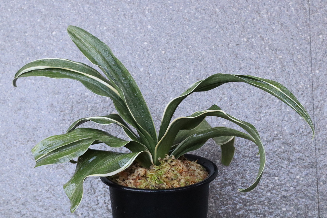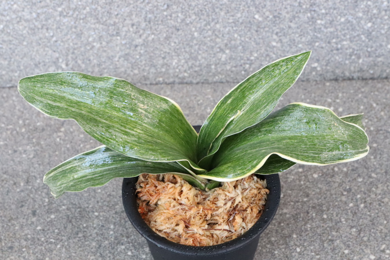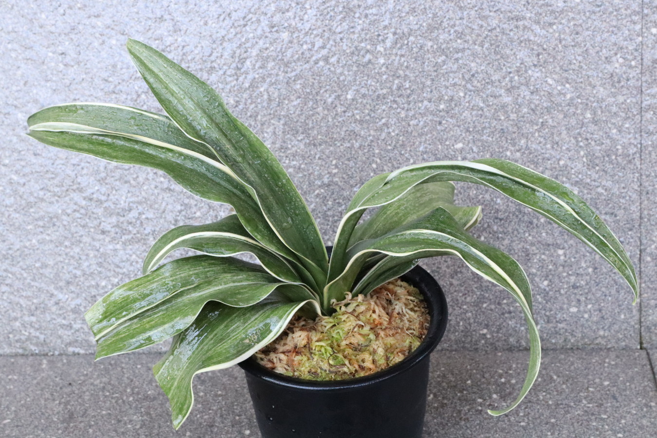 葉先は少し丸く一本竜を見せます、波打つ葉に胡麻斑を現す品種。性質は強健で繁殖も良い。胡麻斑の鮮明なものは「桑名性」という。