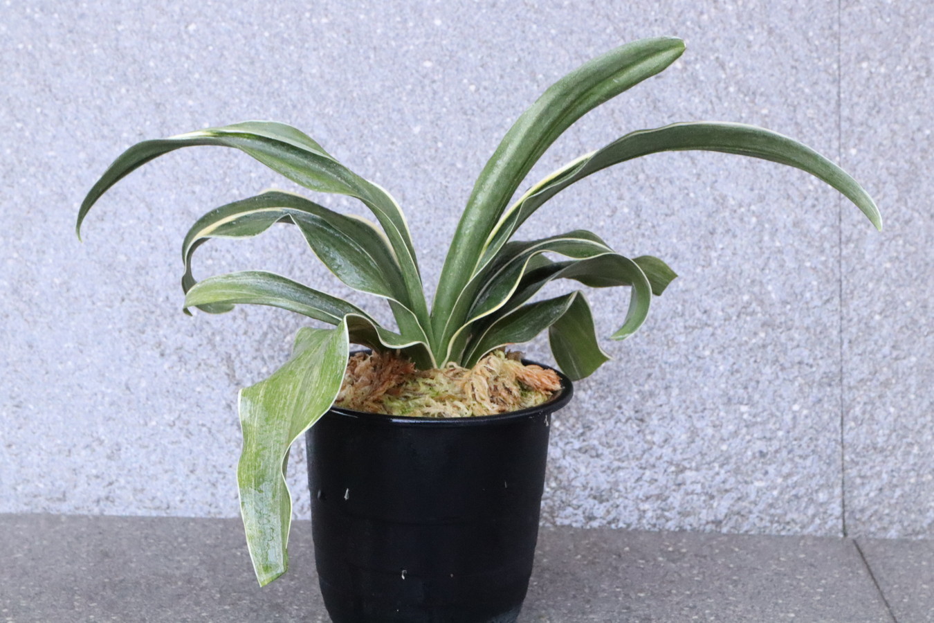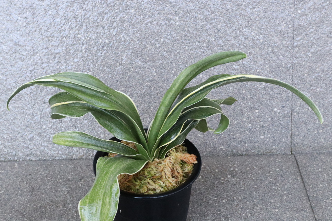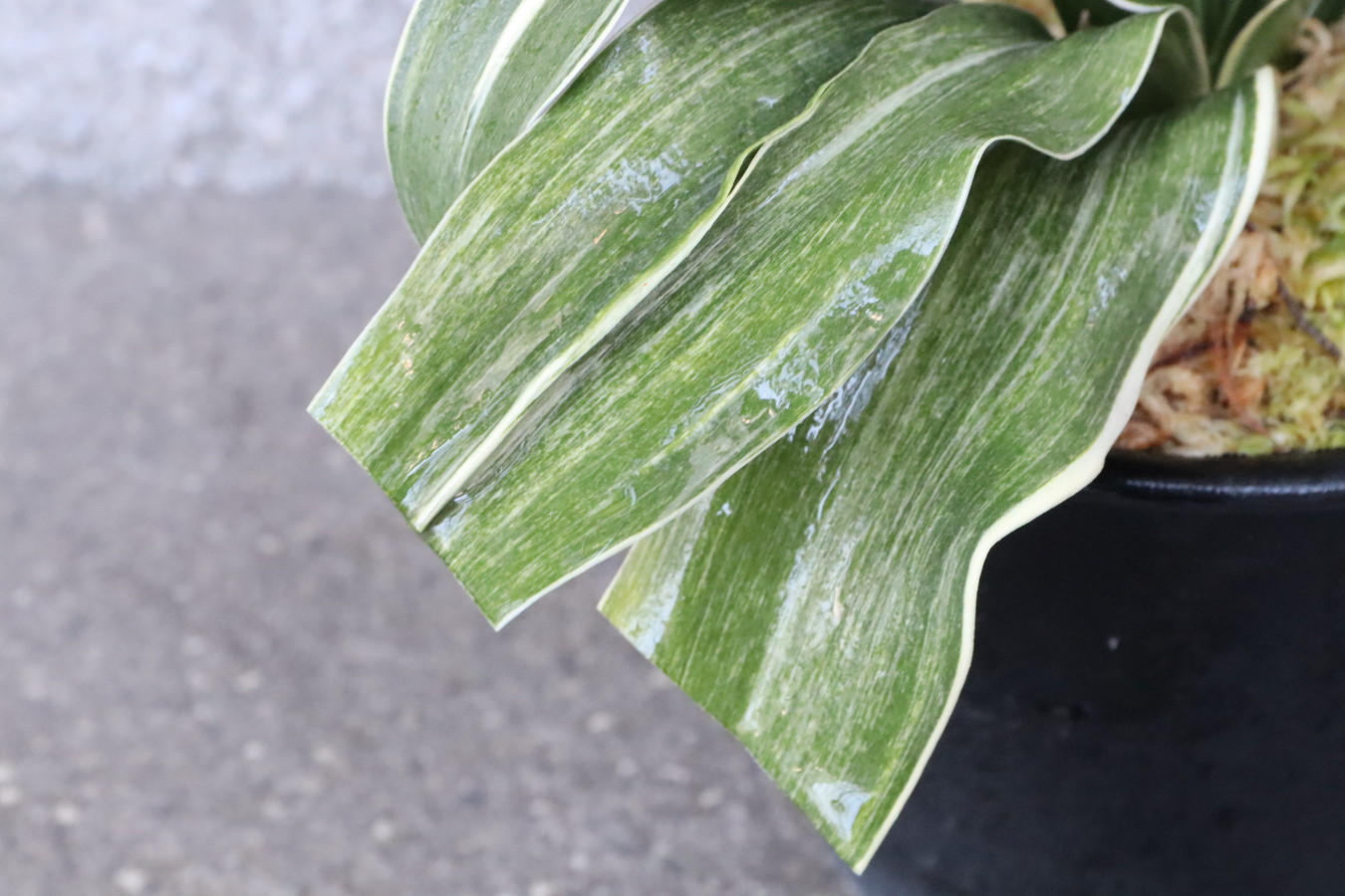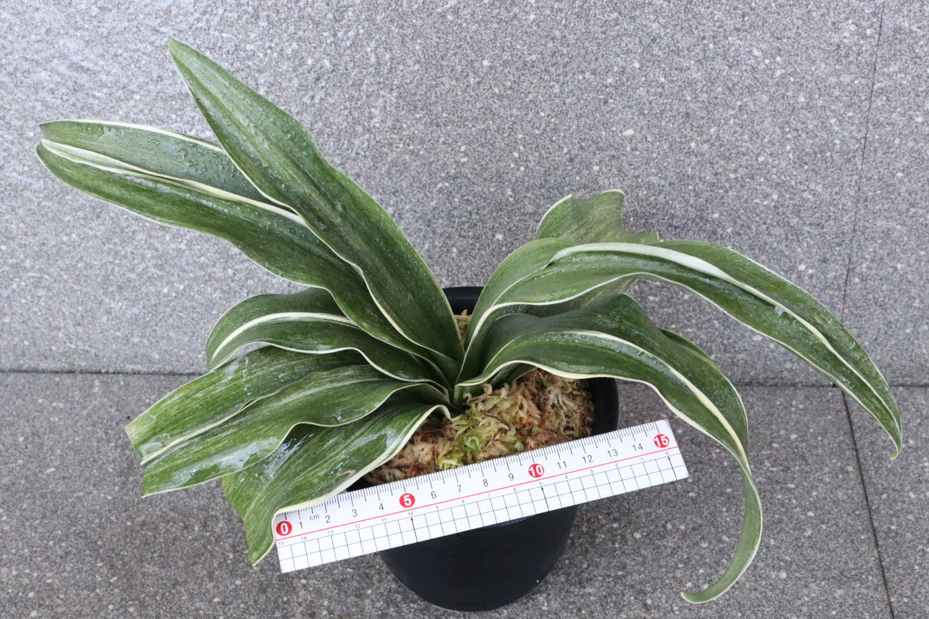 葉先は少し丸く一本竜を見せます、波打つ葉に胡麻斑を現す品種。性質は強健で繁殖も良い。胡麻斑の鮮明なものは「桑名性」という。