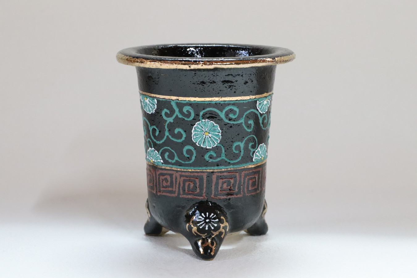2531,古代鉢 華唐草雷紋 万年青鉢 外径約8.4cm 高さ約9.4cm この形製作極少