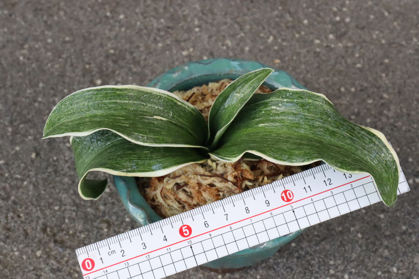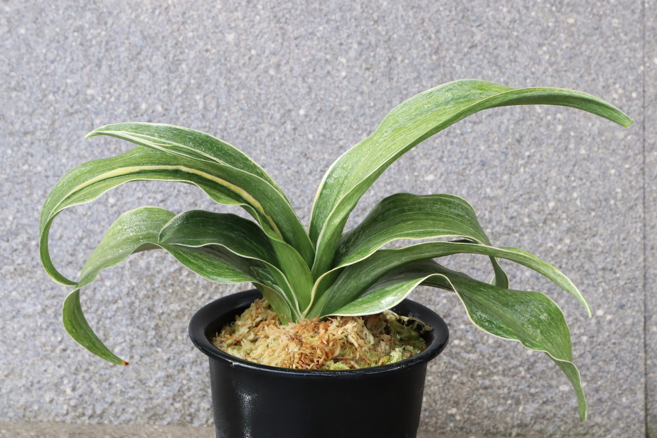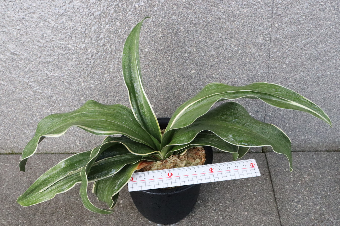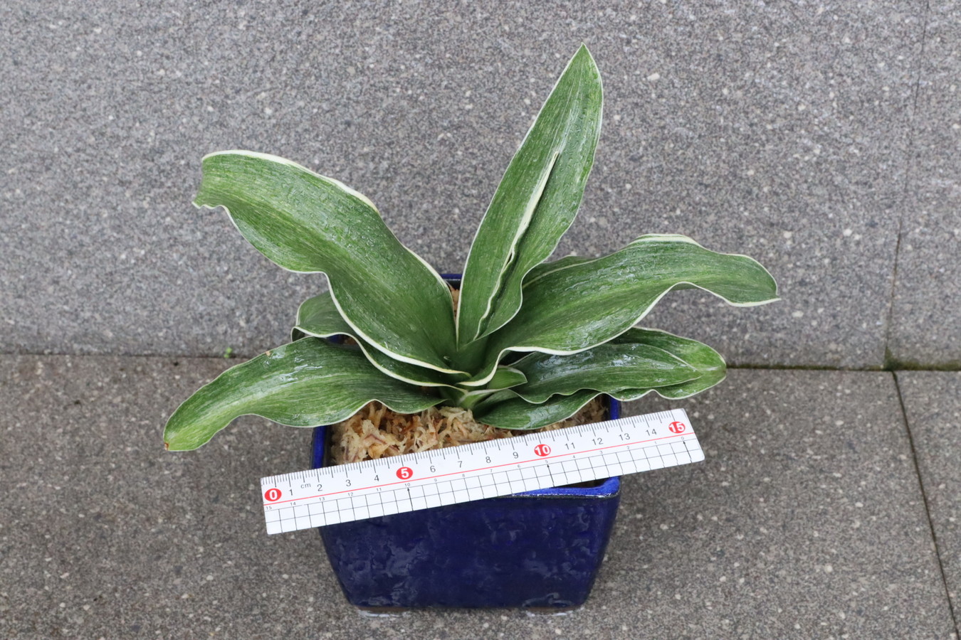 葉先は少し丸く一本竜を見せます、波打つ葉に胡麻斑を現す品種。性質は強健で繁殖も良い。胡麻斑の鮮明なものは「桑名性」ともいう。