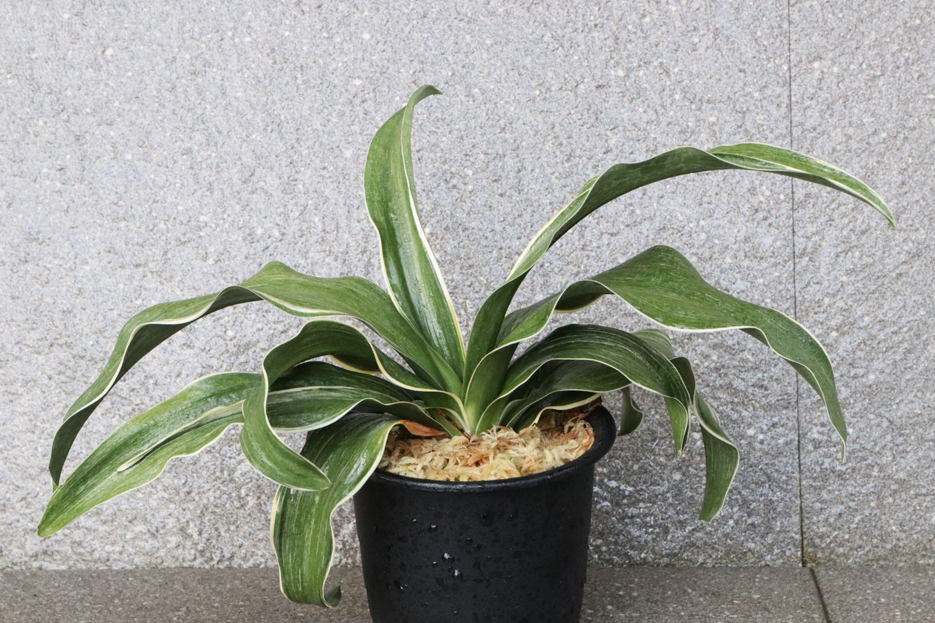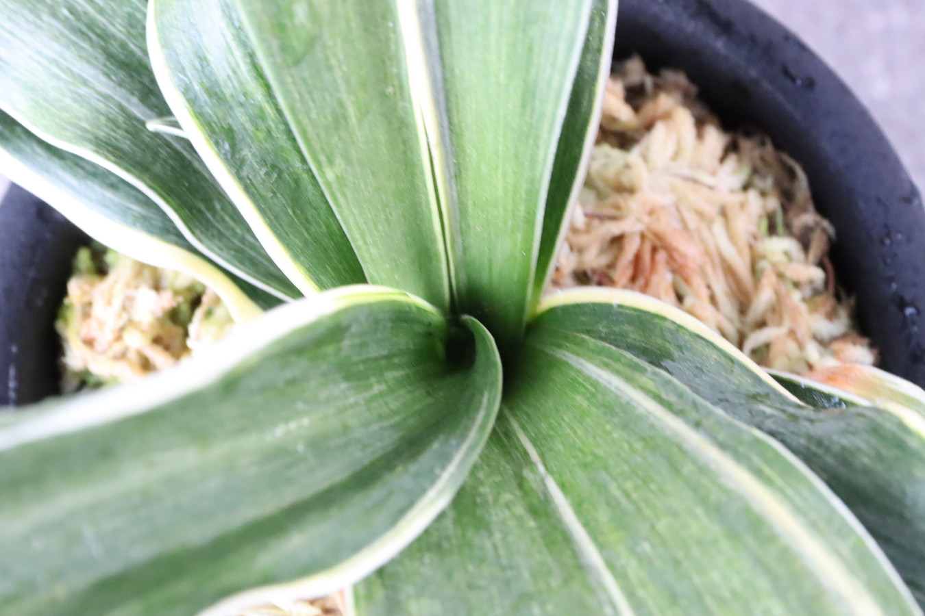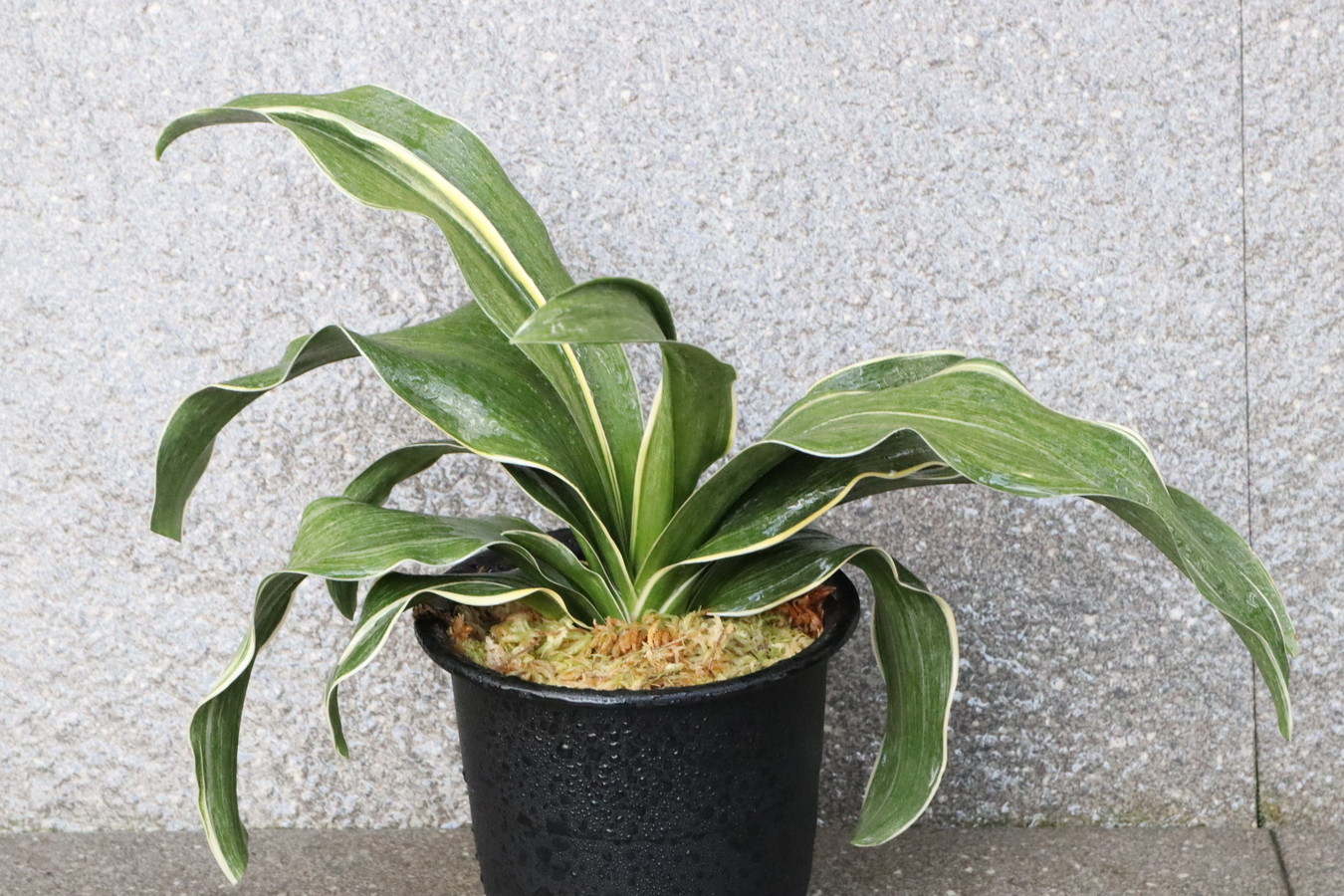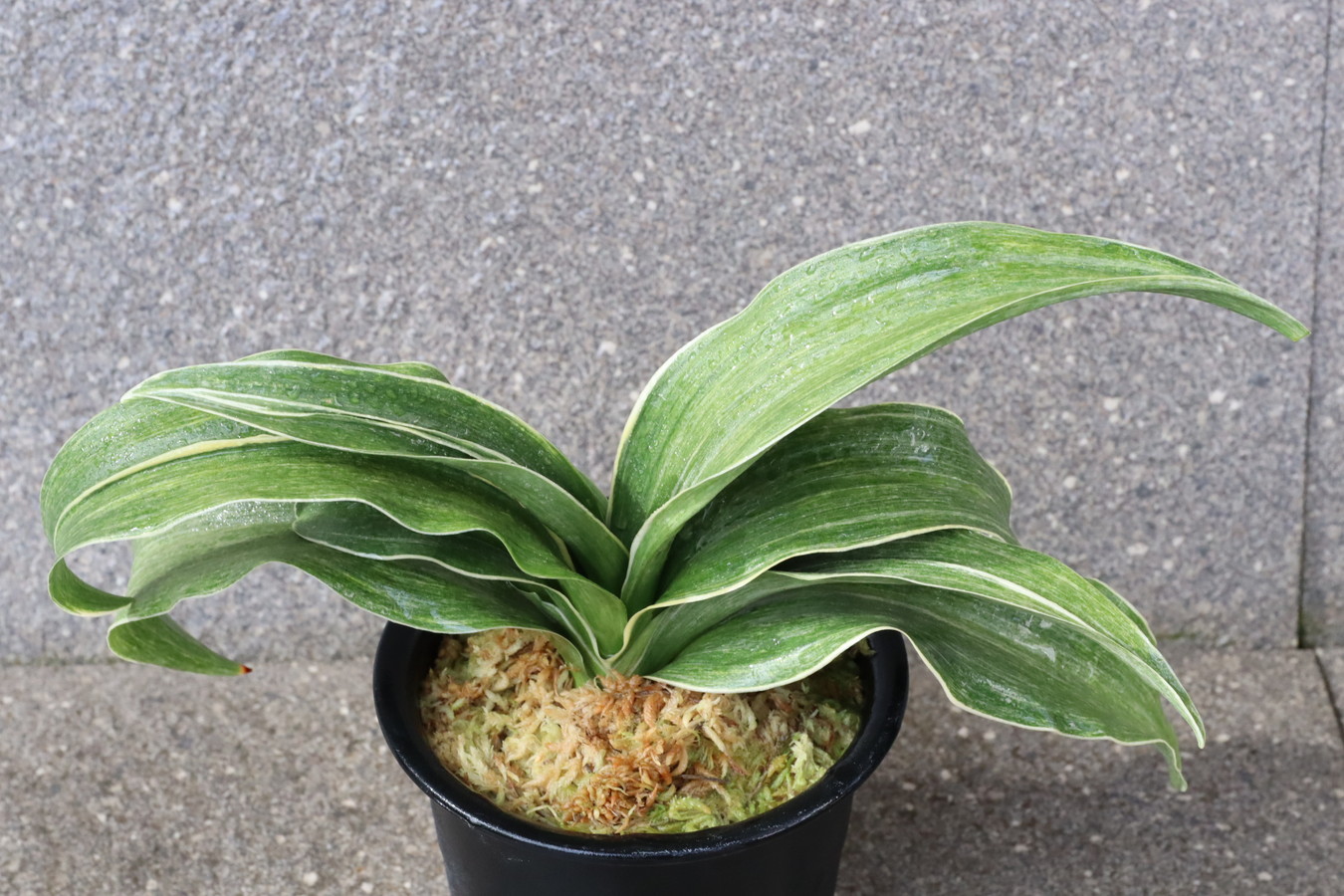 葉先は少し丸く一本竜を見せます、波打つ葉に胡麻斑を現す品種。性質は強健で繁殖も良い。胡麻斑の鮮明なものは「桑名性」ともいう。