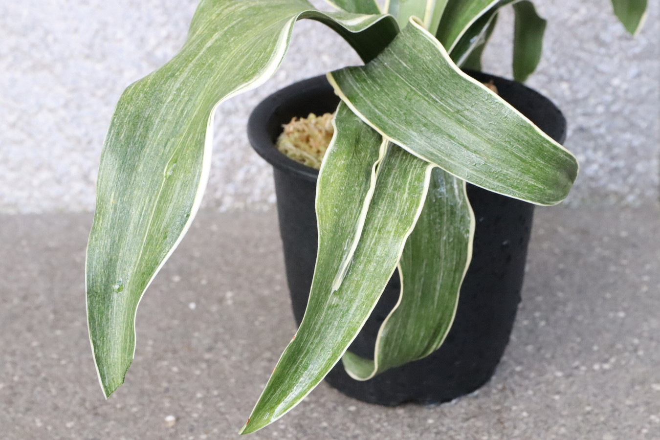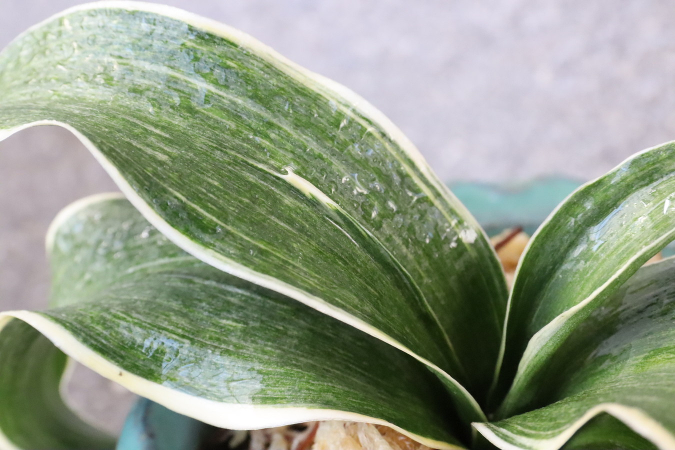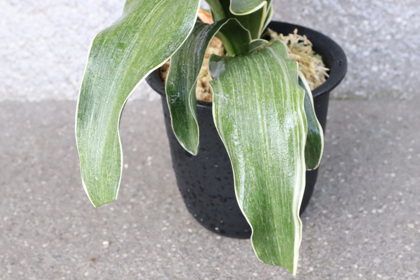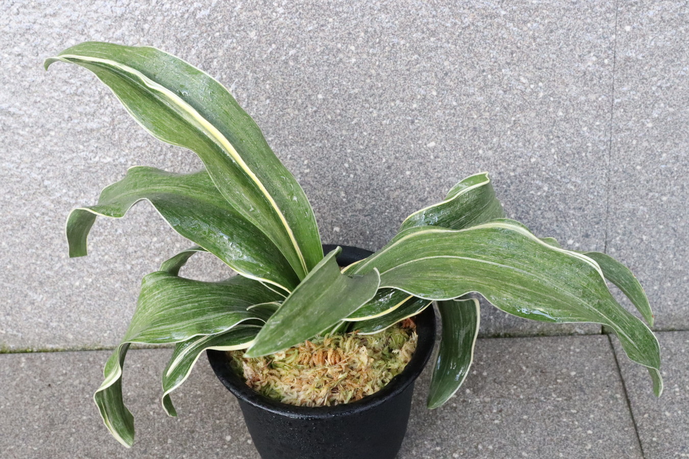 葉先は少し丸く一本竜を見せます、波打つ葉に胡麻斑を現す品種。性質は強健で繁殖も良い。胡麻斑の鮮明なものは「桑名性」ともいう。