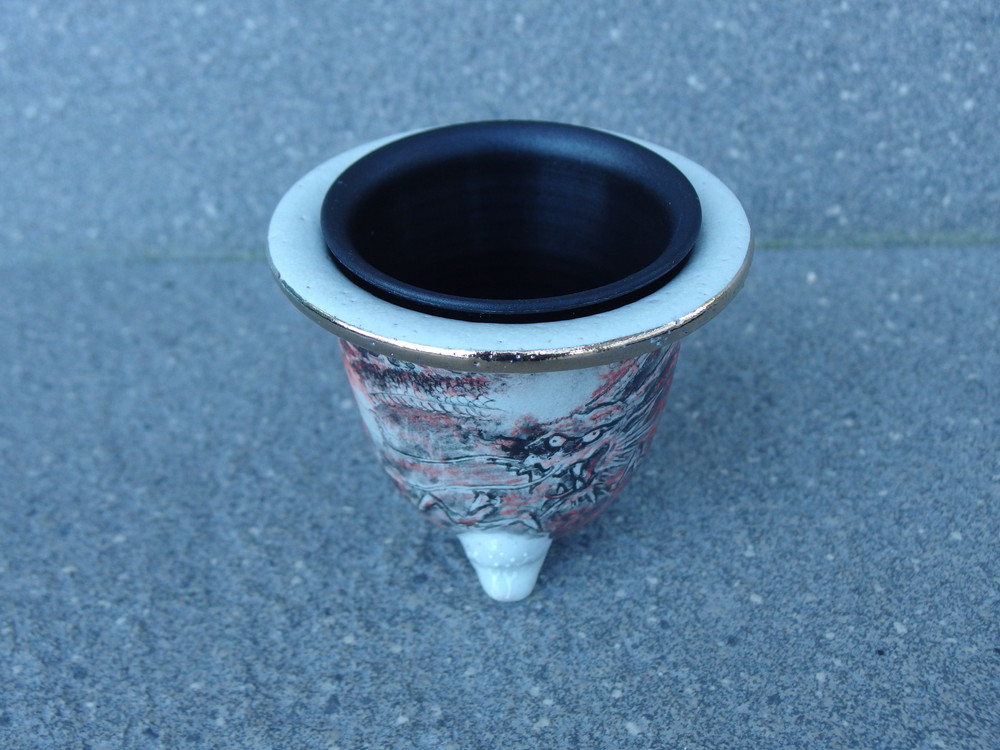 2558,【13000→8000】白地紅龍 外形約9.2cm 高さ約7.8cm カバー鉢 亘サイン