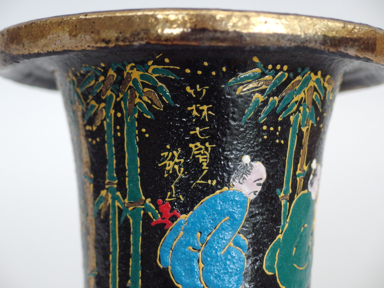 3032, 竹林七賢人 萬年青楽鉢 外径約11.7cm 龍山絵 蔵出し 中古