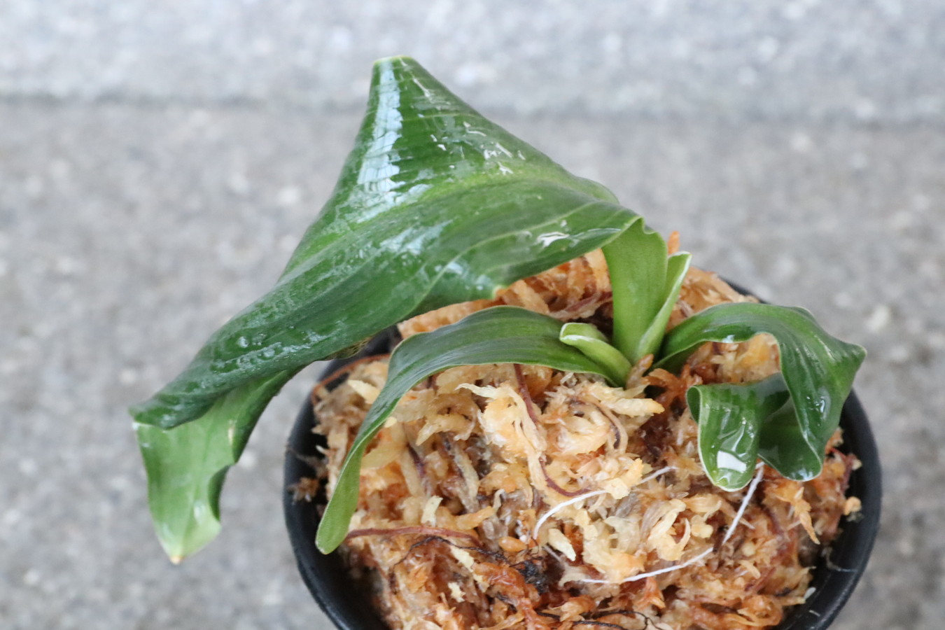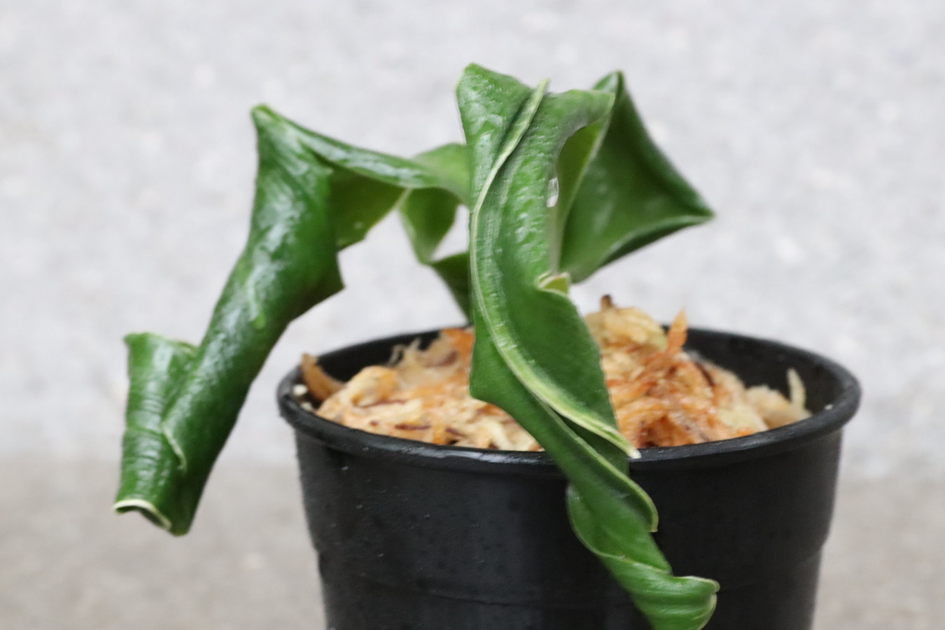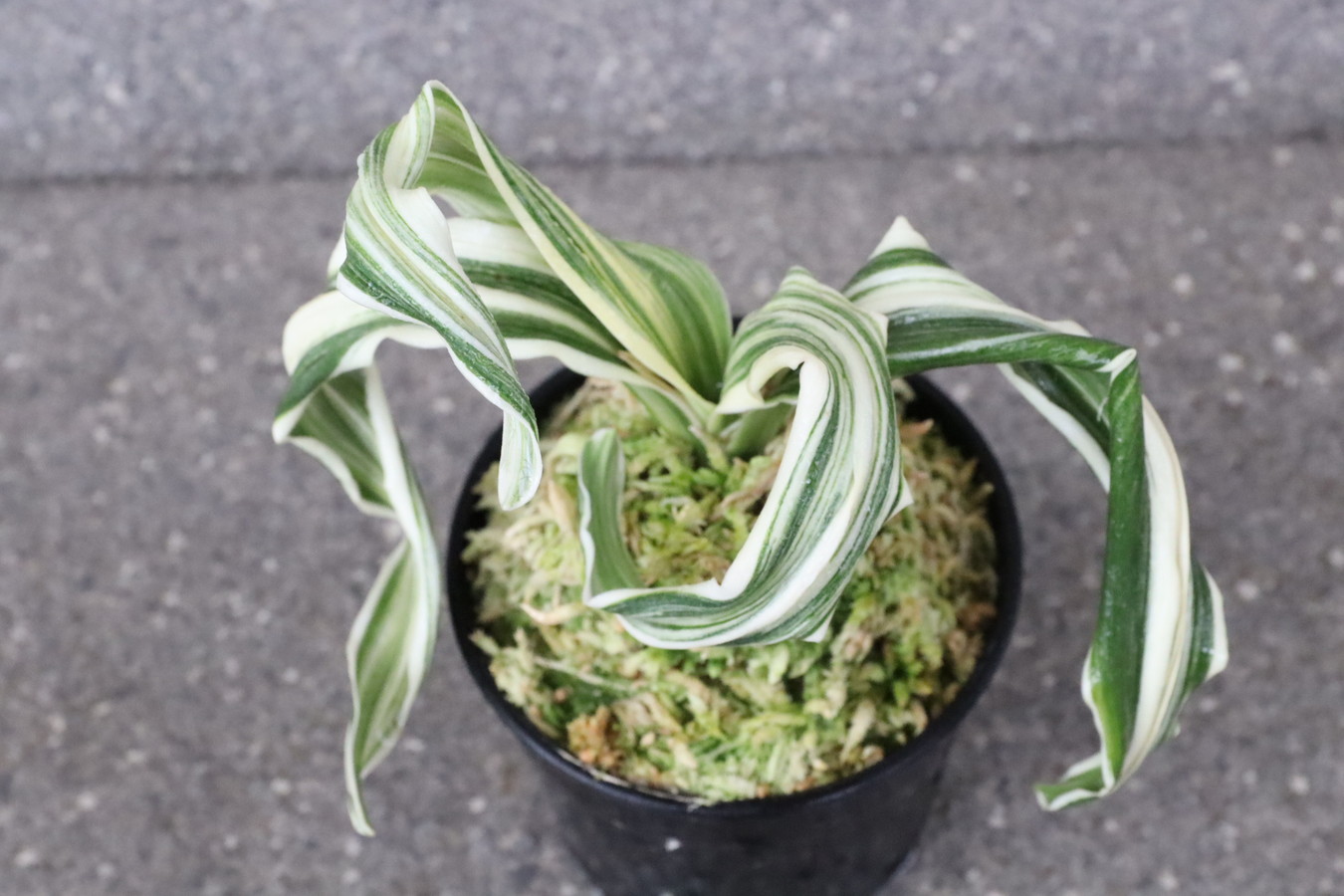 幅広の葉に縞柄あり、素晴らしい力強い葉姿 四君子のような、海龍獅子のような葉、葉芸をみせる万年青