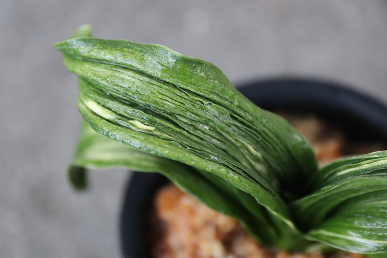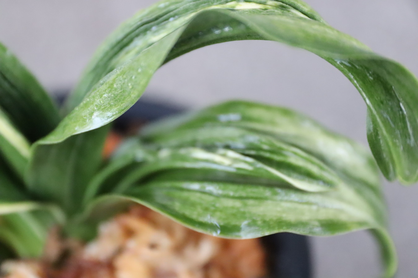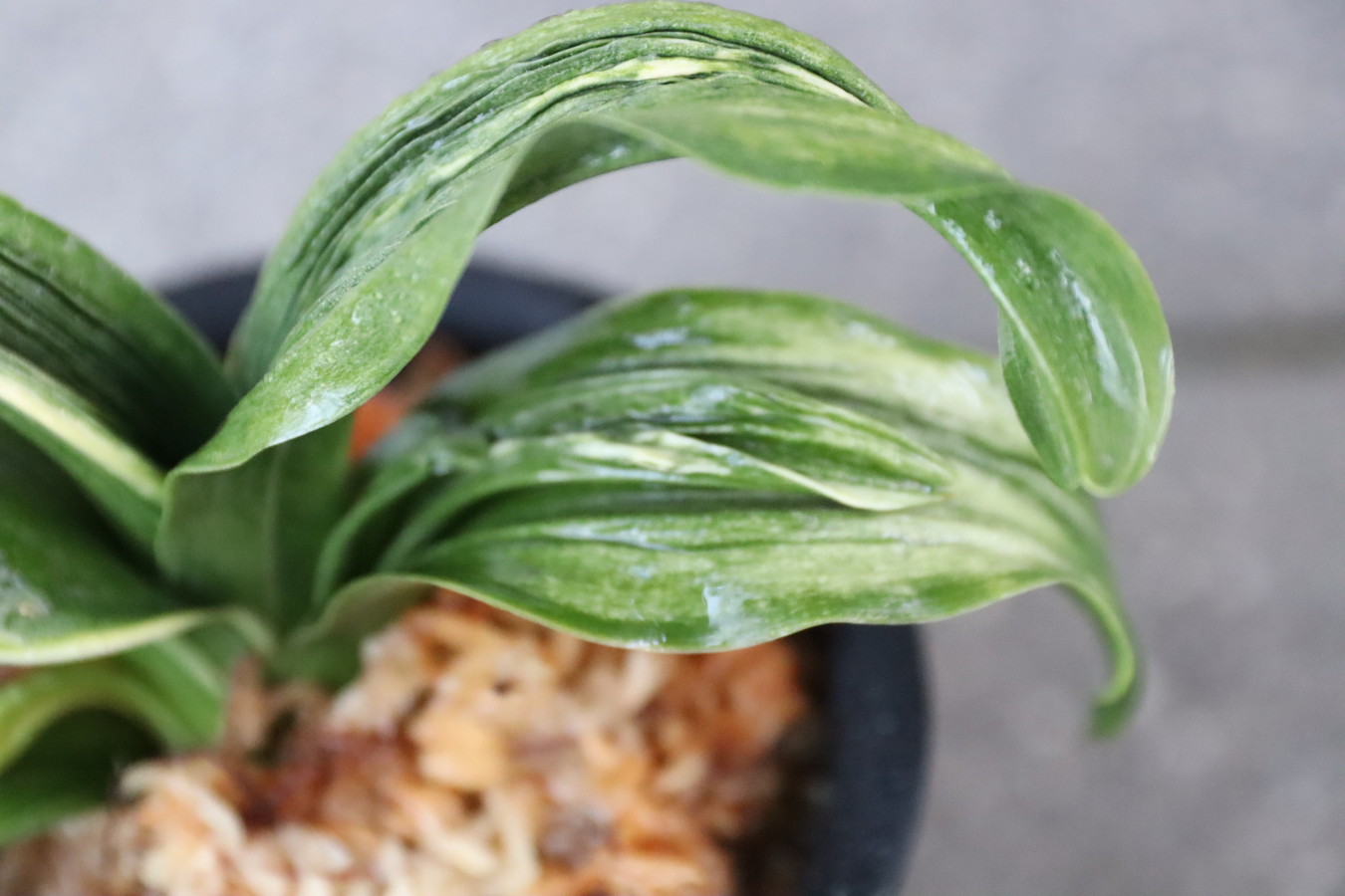 太陽は今の万年青界四天王とも言われる人気品種であり、最高の実親で、岳陽を生み、羅紗の実績は多数。実親もたくさん産んでいる。親が錦麒麟と福寿龍という素晴らしい実親なので、錦麒麟型、福寿龍型のような実生もみせる