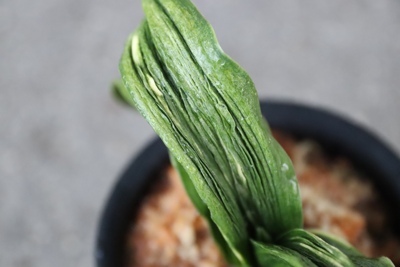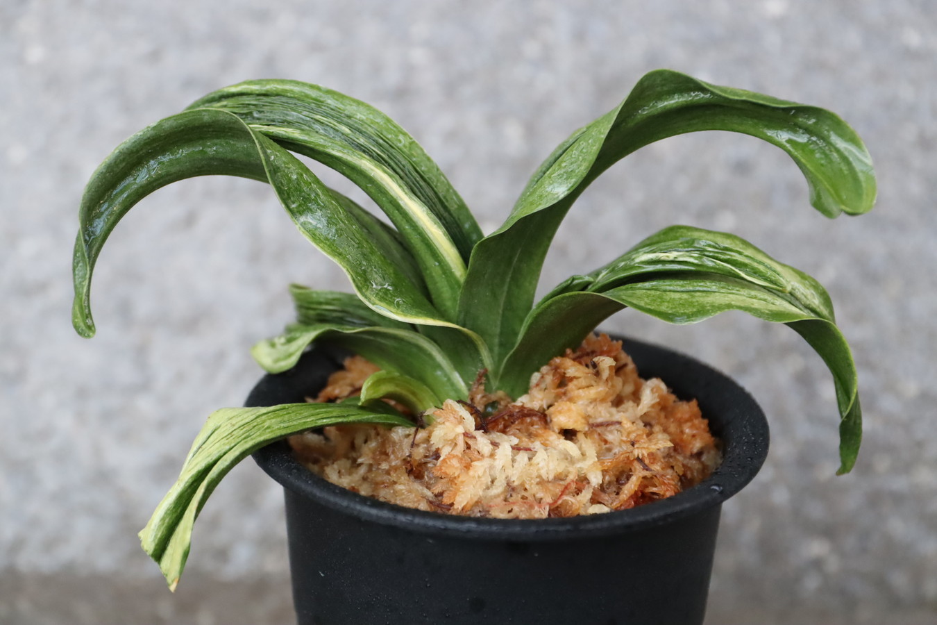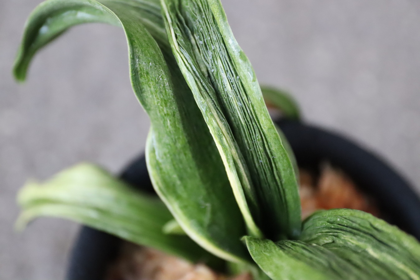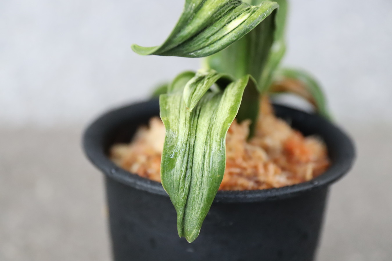 太陽は今の万年青界四天王とも言われる人気品種であり、最高の実親で、岳陽を生み、羅紗の実績は多数。実親もたくさん産んでいる。親が錦麒麟と福寿龍という素晴らしい実親なので、錦麒麟型、福寿龍型のような実生もみせる