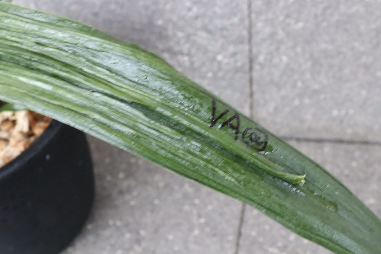 V:V(カキガラ錦福)は最高の実親で、壽冠を生み、羅紗の実績は多数。実親もたくさん産んでいる。芸、地合いも深みのある最上の子を産む 2020年時点で、苗が120万とも、250万ともいわれる寿冠を作出した親.実生は雅糸竜強く、葉肉あり、葉巾もくる。Vというのはチェックマークのことで、羅紗実生では素晴らしい実績を示した小野田氏が特に羅紗、よくなる確率の成績素晴らしいとしてチェックマーク(V)をつけたことから。