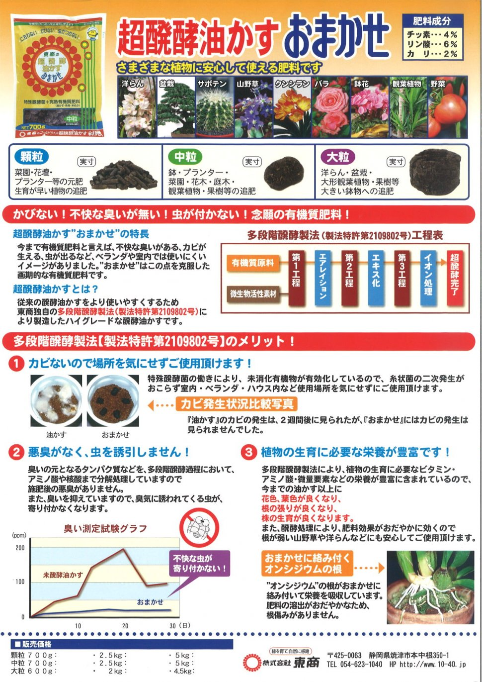 趣味者に一定の評判があり弊園でも使っている肥料。