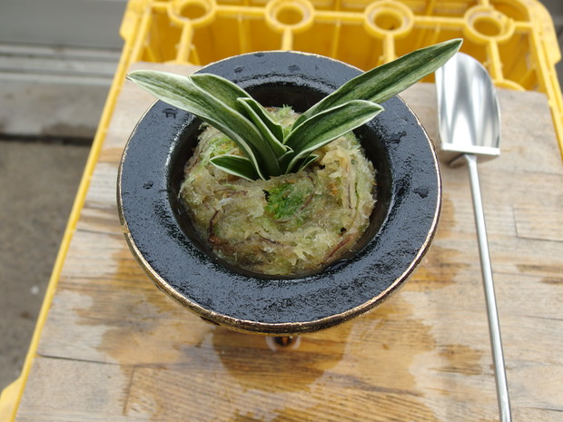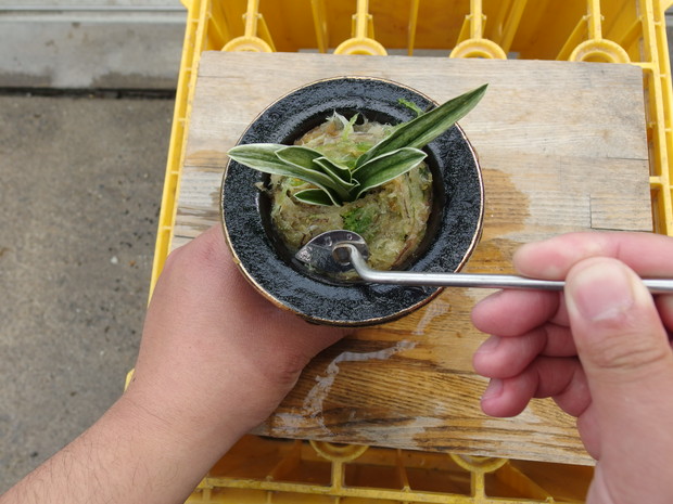 おもとを植える際砂利を狙った位置に流し込む際に使用。さじ。