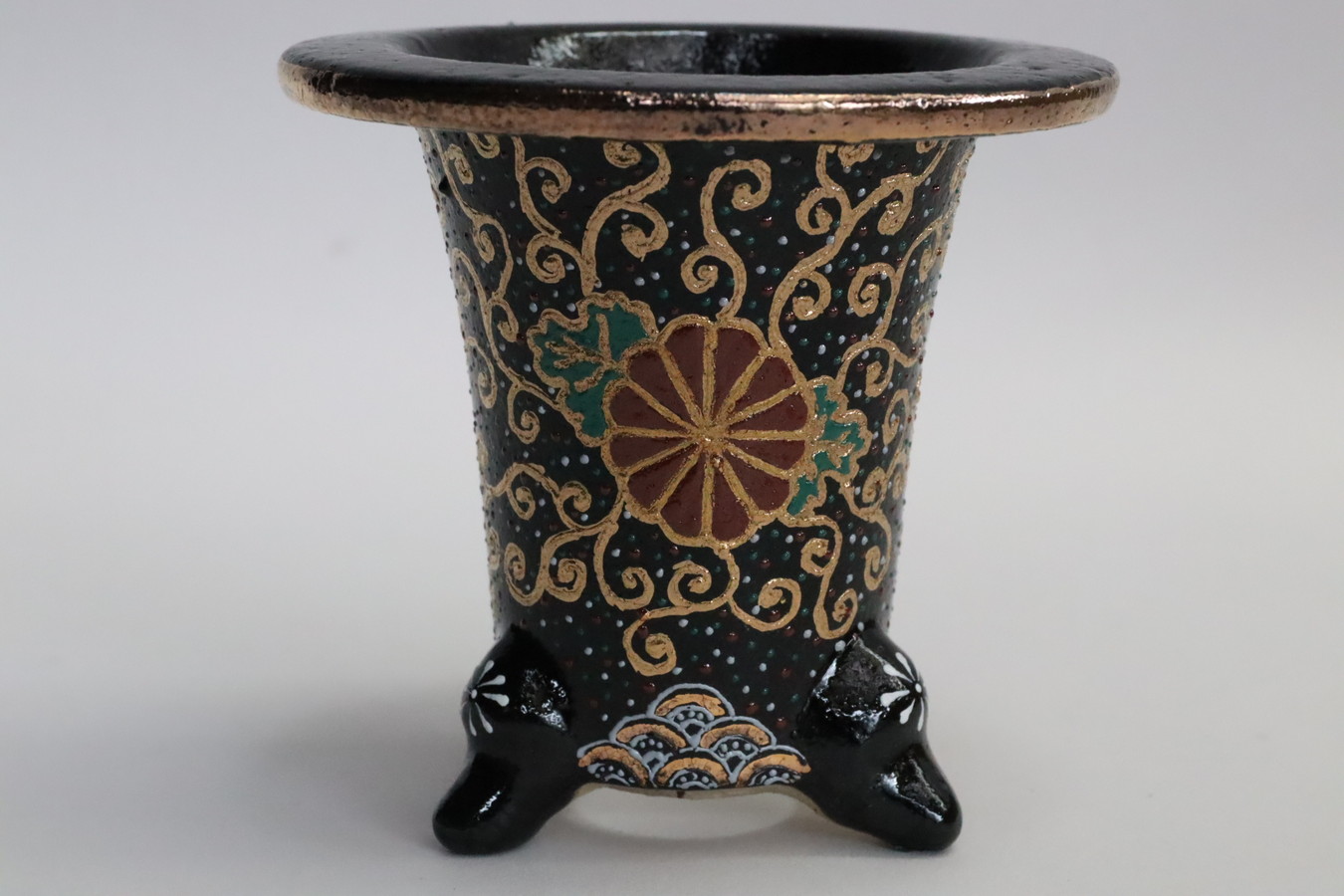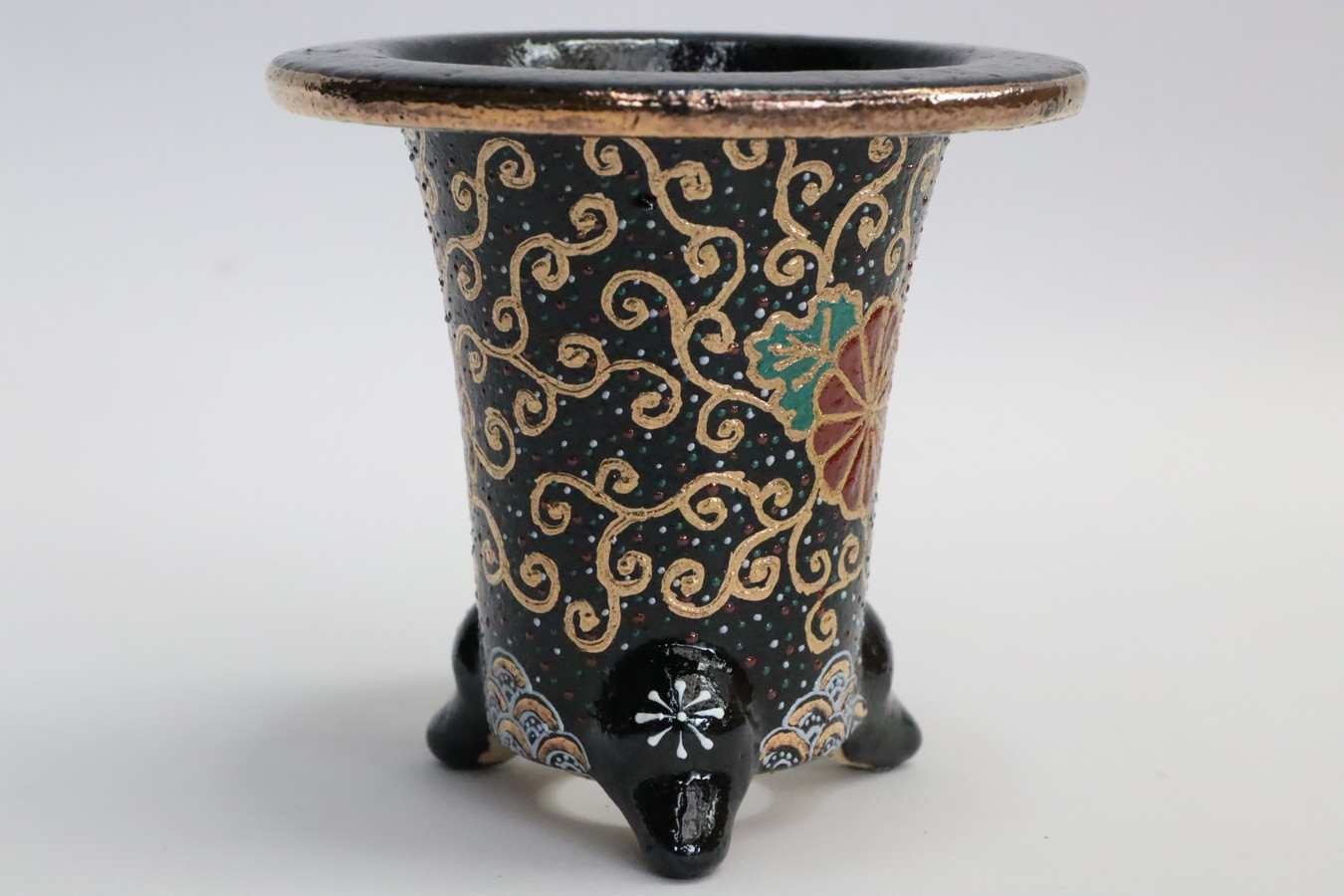 2384,華唐草 萬年青楽鉢 外径約9.4cm 華サイン 他にない味ある作品