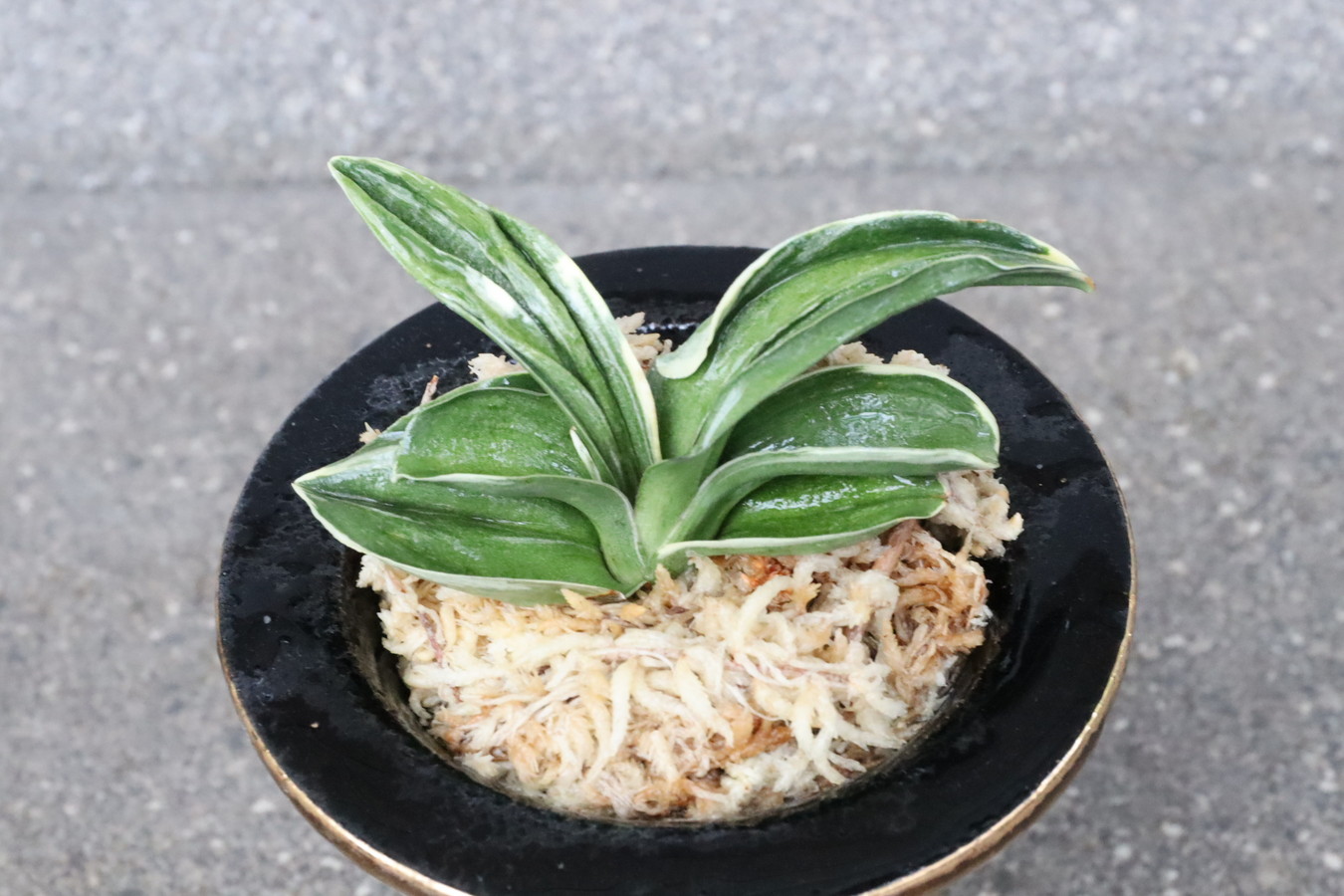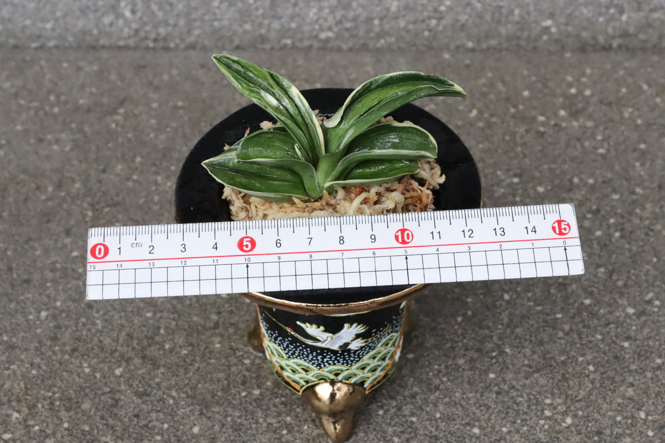 この品種の魅力は、「力和」でしか味わえない芸、丸葉の可愛らしい姿、その変化と、たくさんあります。杉山力蔵氏と岡田和吉氏が共有したため、『力和実生』と呼ばれ親しまれてました。昭和48年に待望の覆輪が完成。実生時代から常に人気で、三河地方では当時100万円、300万以上の値が付いて、喧嘩するほどの奪い合いだったそうです(豊明園2代目談)。
