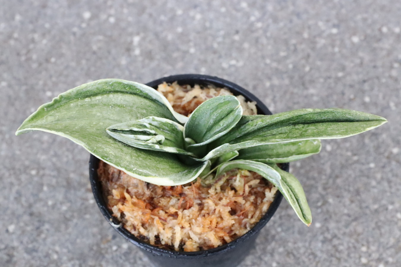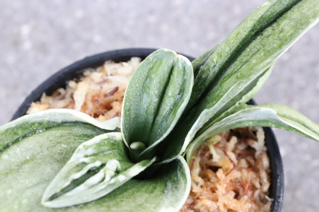 この品種の魅力は、「力和」でしか味わえない芸、丸葉の可愛らしい姿、その変化と、たくさんあります。杉山力蔵氏と岡田和吉氏が共有したため、『力和実生』と呼ばれ親しまれてました。昭和48年に待望の覆輪が完成。実生時代から常に人気で、三河地方では当時100万円、300万以上の値が付いて、喧嘩するほどの奪い合いだったそうです(豊明園2代目談)。
