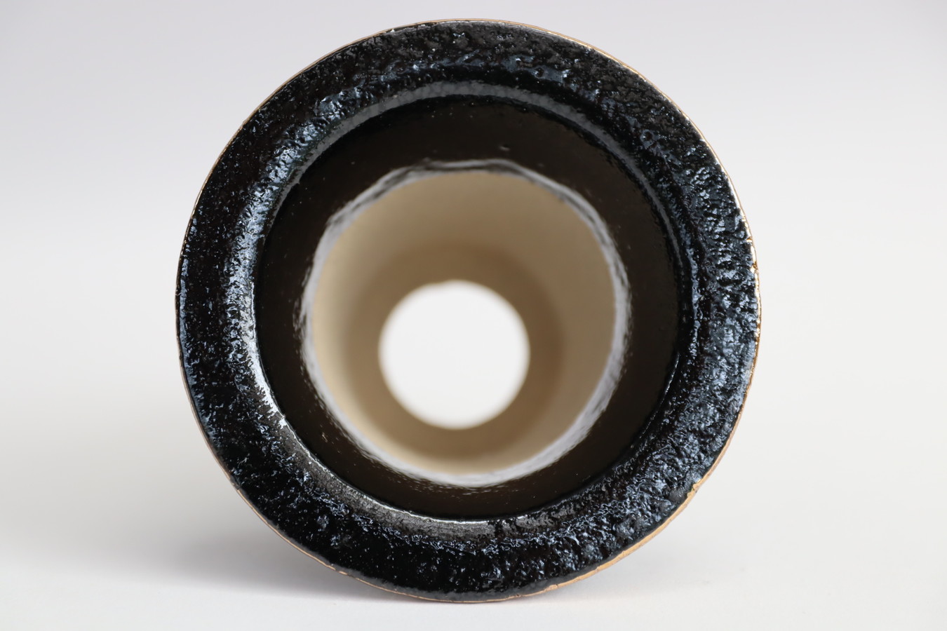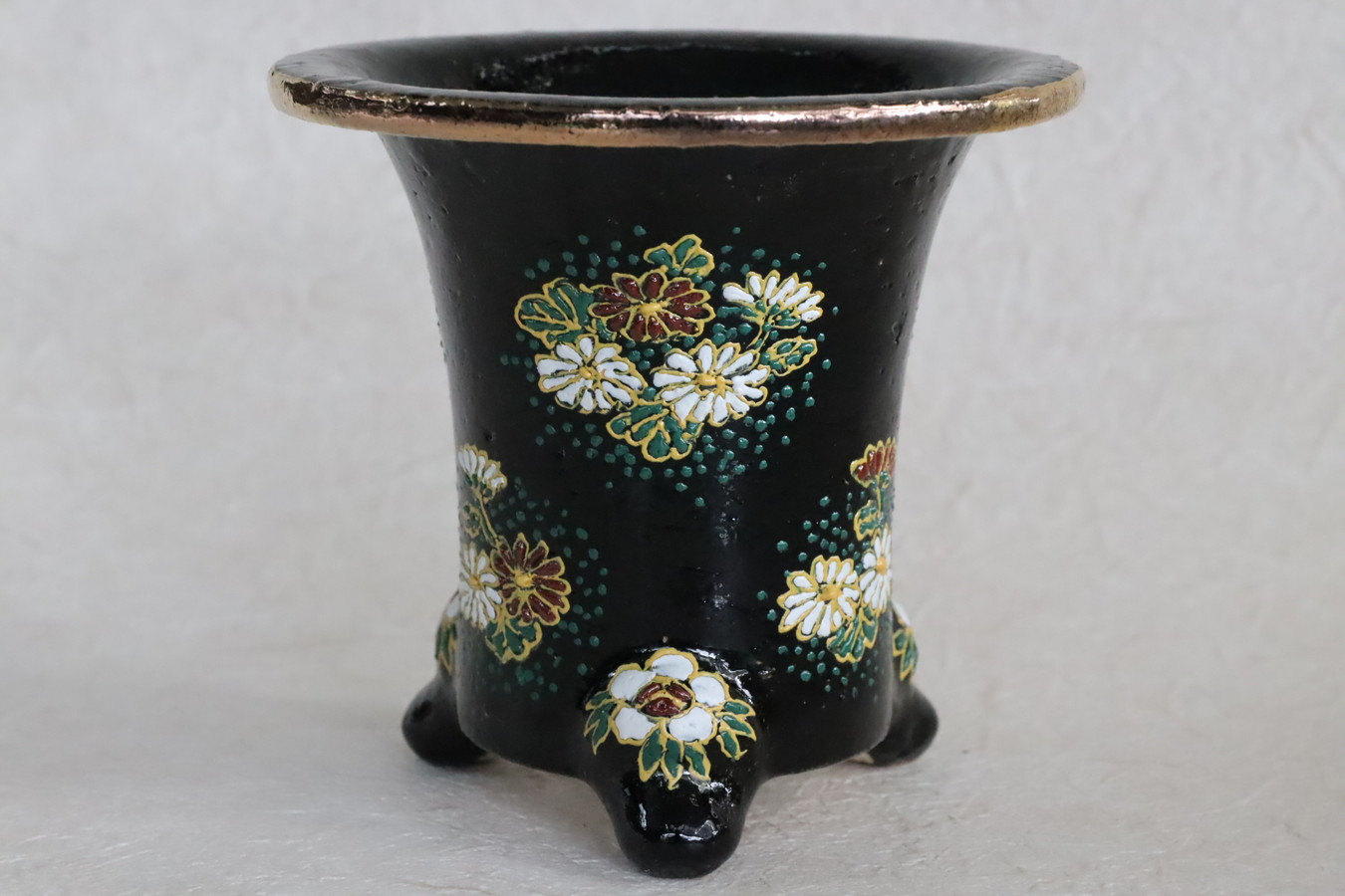 楽焼は天正年間(約400年前)に始まる日本独特の焼き物です。楽焼は《急熱急冷》という特殊な焼成方法をとります。急熱急冷だから、鉢に細かな 微細な穴ができ、通気を良くしています。おもと鉢 作り方 楽焼黒鉢の製造工程