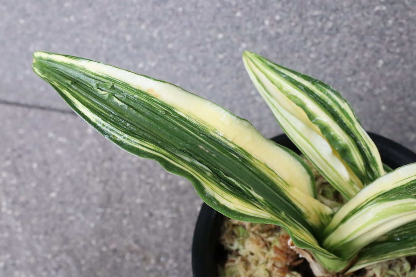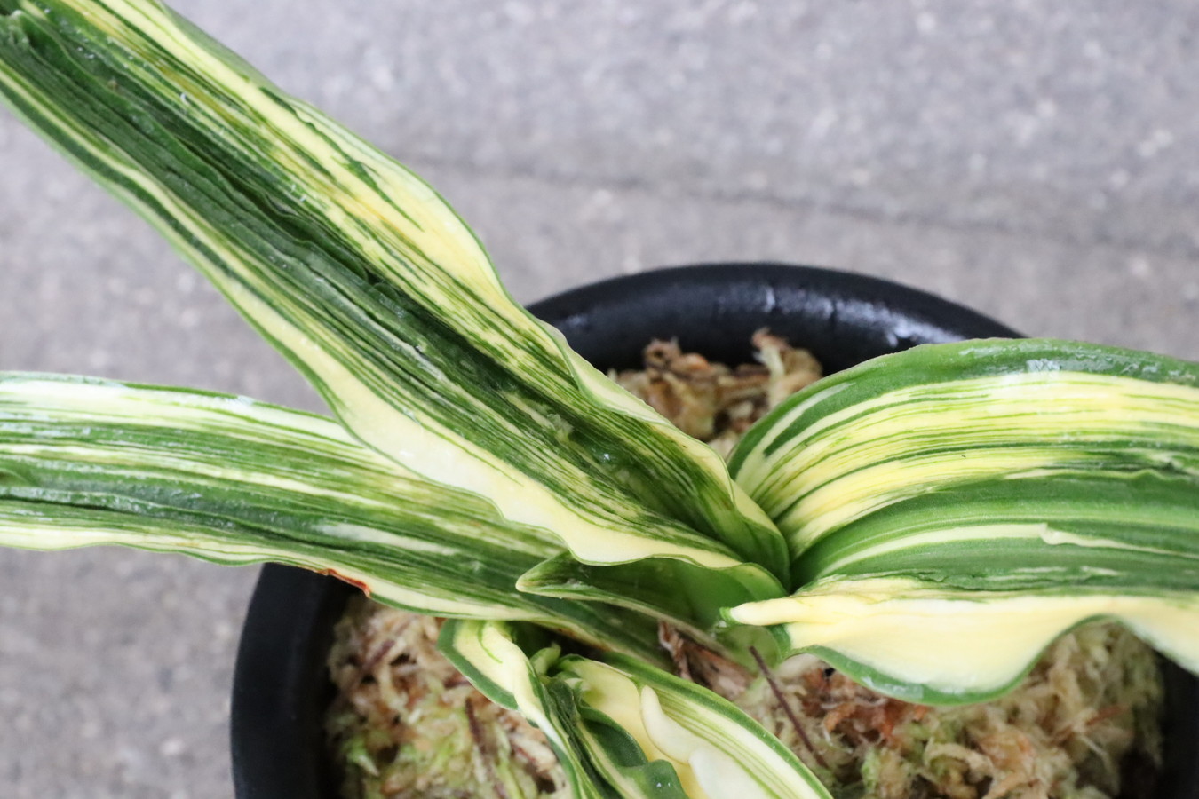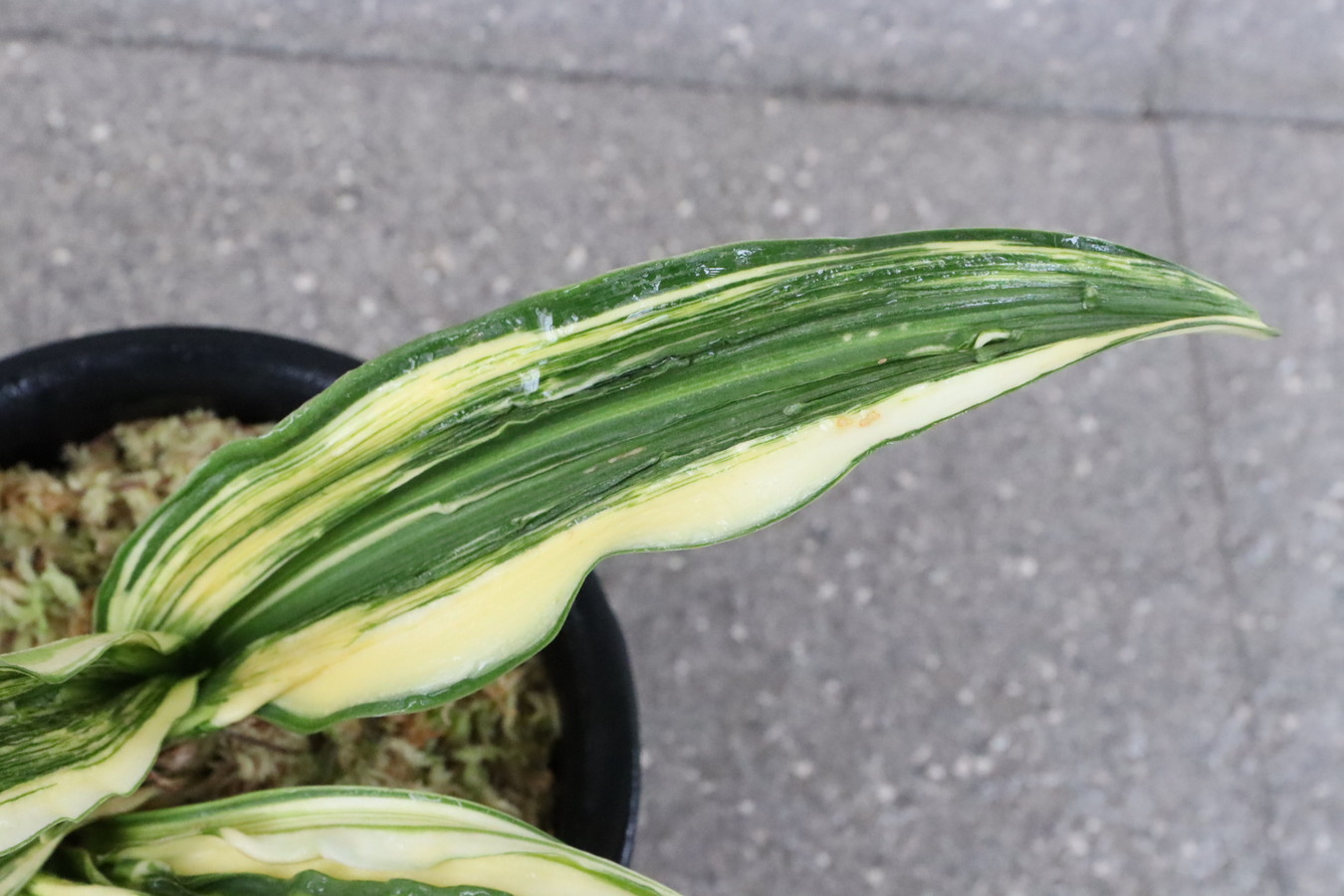 太陽:今の万年青界四天王とも言われる人気品種であり、最高の実親で、岳陽を生み、羅紗の実績は多数。実親もたくさん産んでいる。親が錦麒麟と福寿龍という素晴らしい実親なので、錦麒麟型、福寿龍型のような実生もみせる