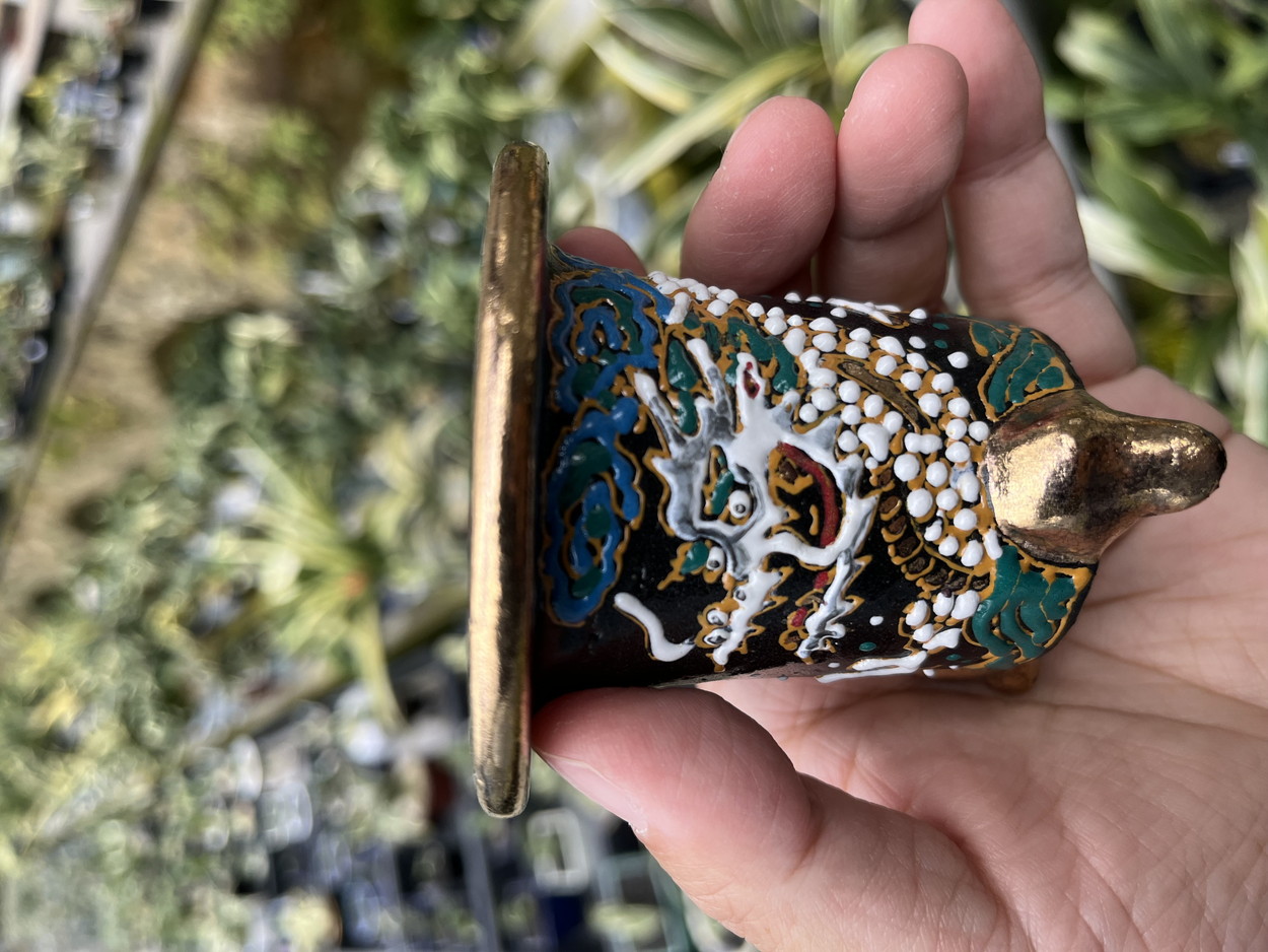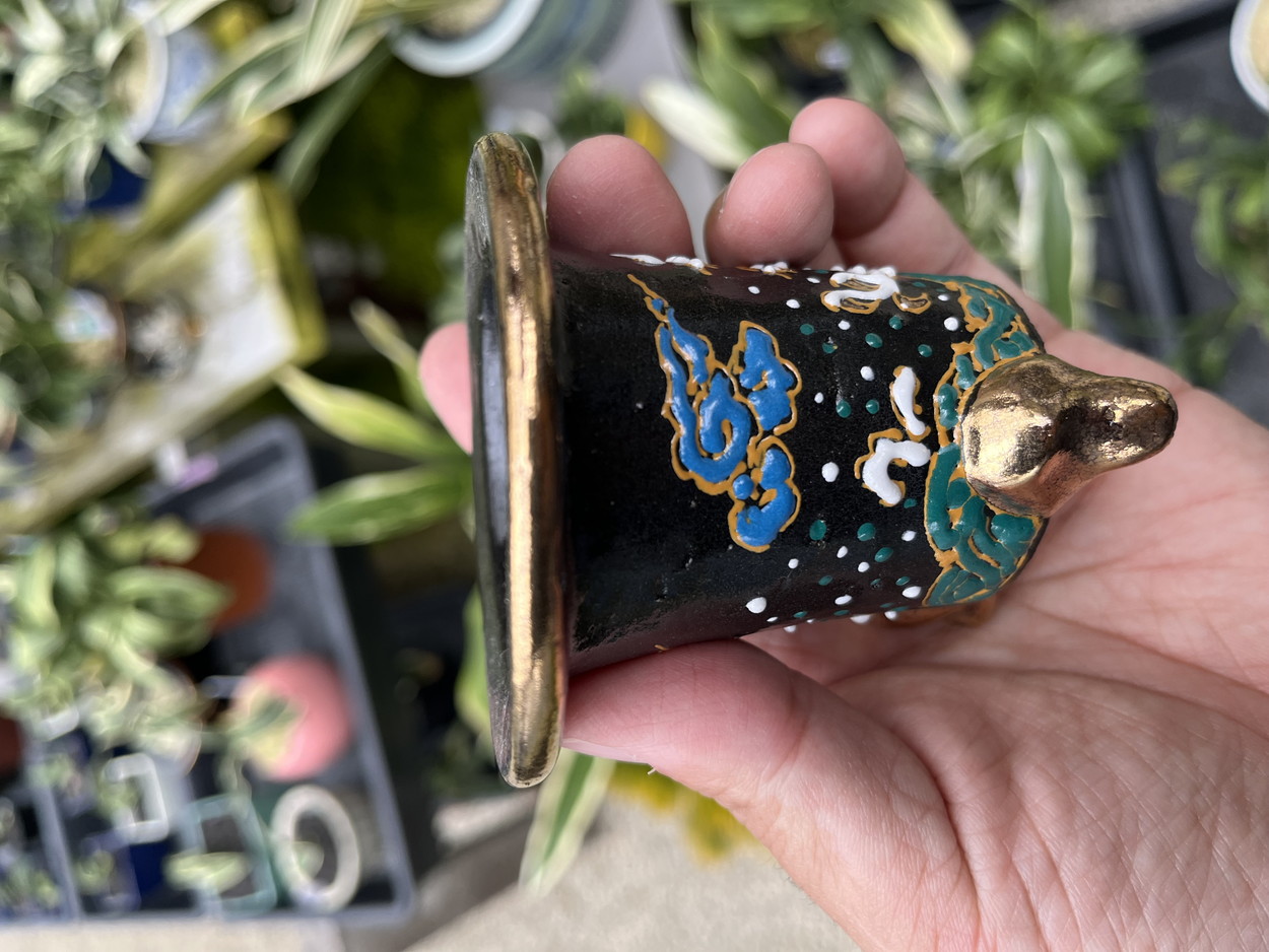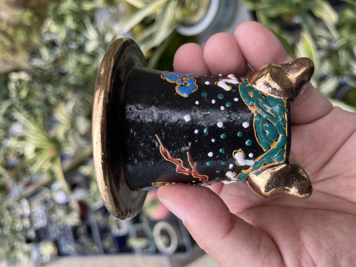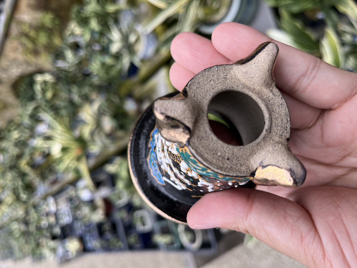 おもと鉢 利山・手島?? 現代鉢作家 利山工房のイッチン