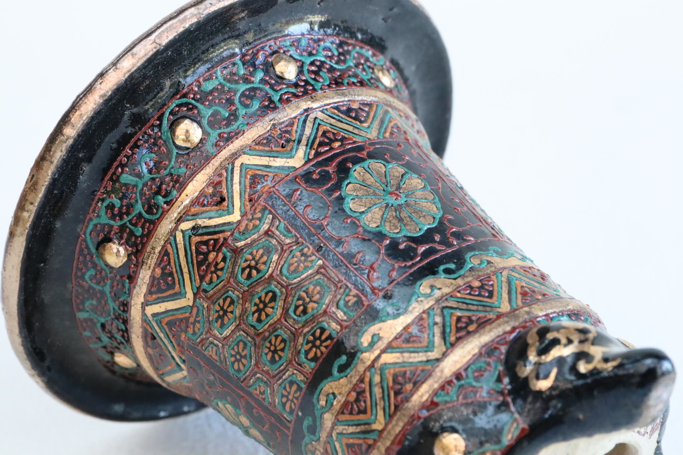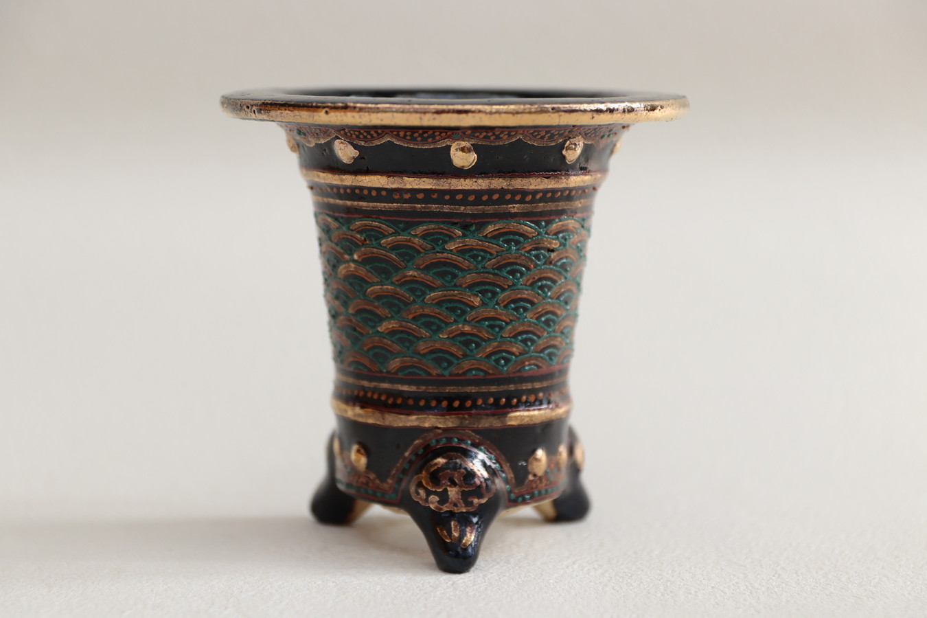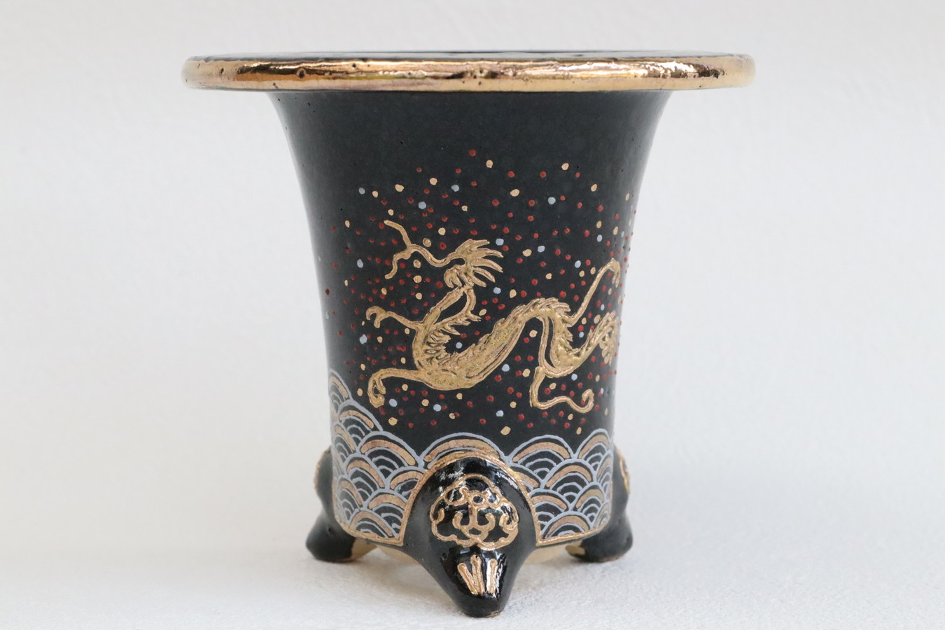 2524,加茂黒 金古代龍 青海波 外径約10.1cm 華サイン 賀茂黒