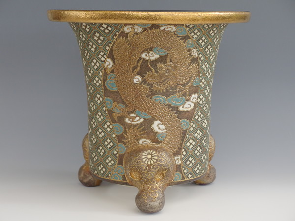 4930,昇り龍花柄絵鉢 外形 約22.7cm