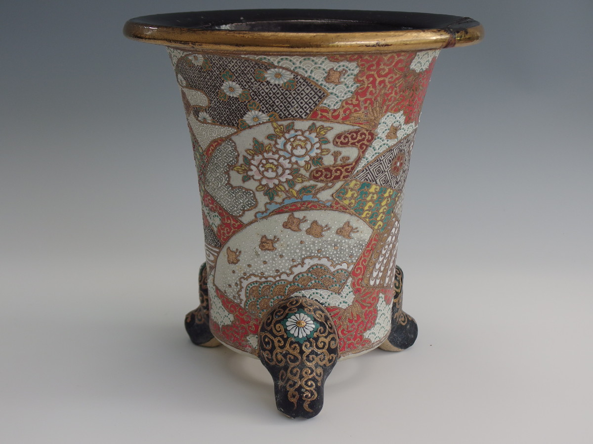 4937,吉祥扇絵鉢 外形 約22cm 高さ23㎝ ワレ直しあり
