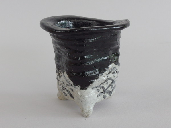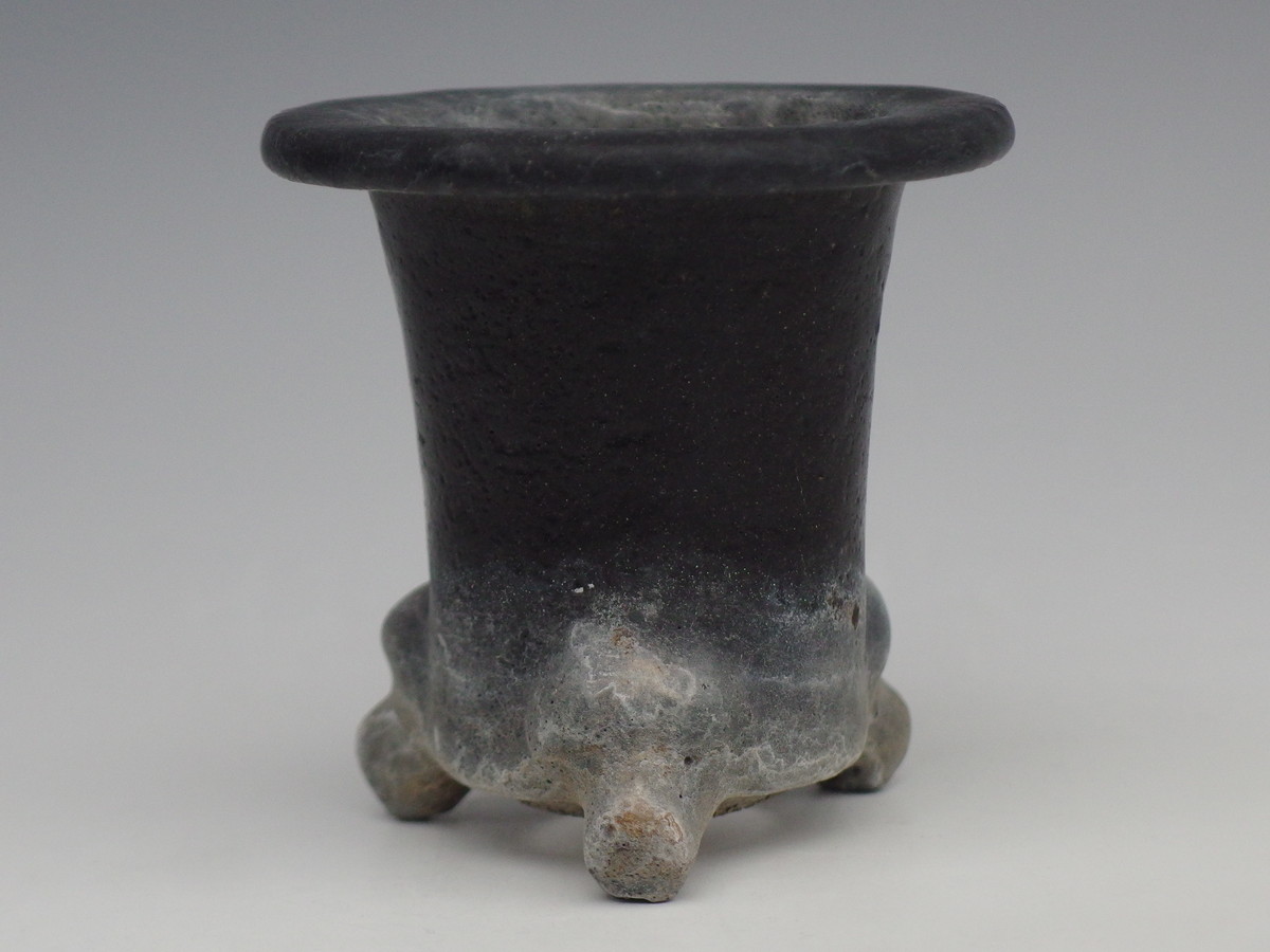2061,古鉢 楽鉢 外径約8cm 高さ約5.3cm 加茂黒はさみあと 中古 ワレ 古く素晴らしい ※金継の練習台??