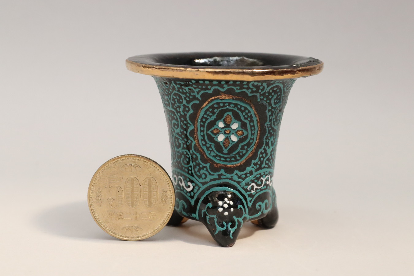 2412,ちび鉢・極 五龍唐草 萬年青鉢 外径約6.1cm 高さ約5.4cm 職人造りのミニチュア鉢 ※商品は鉢のみ