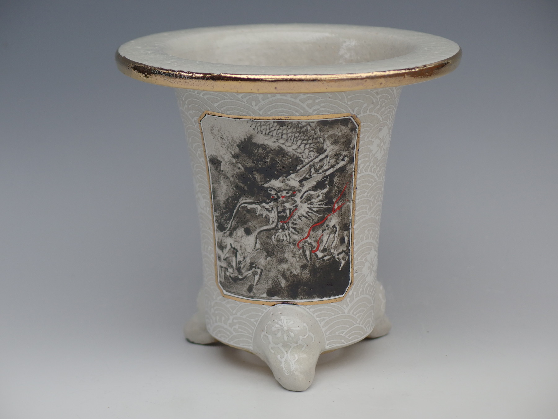 4547,龍 七々子青海波唐草紋 外形 約12.7cm 亘作