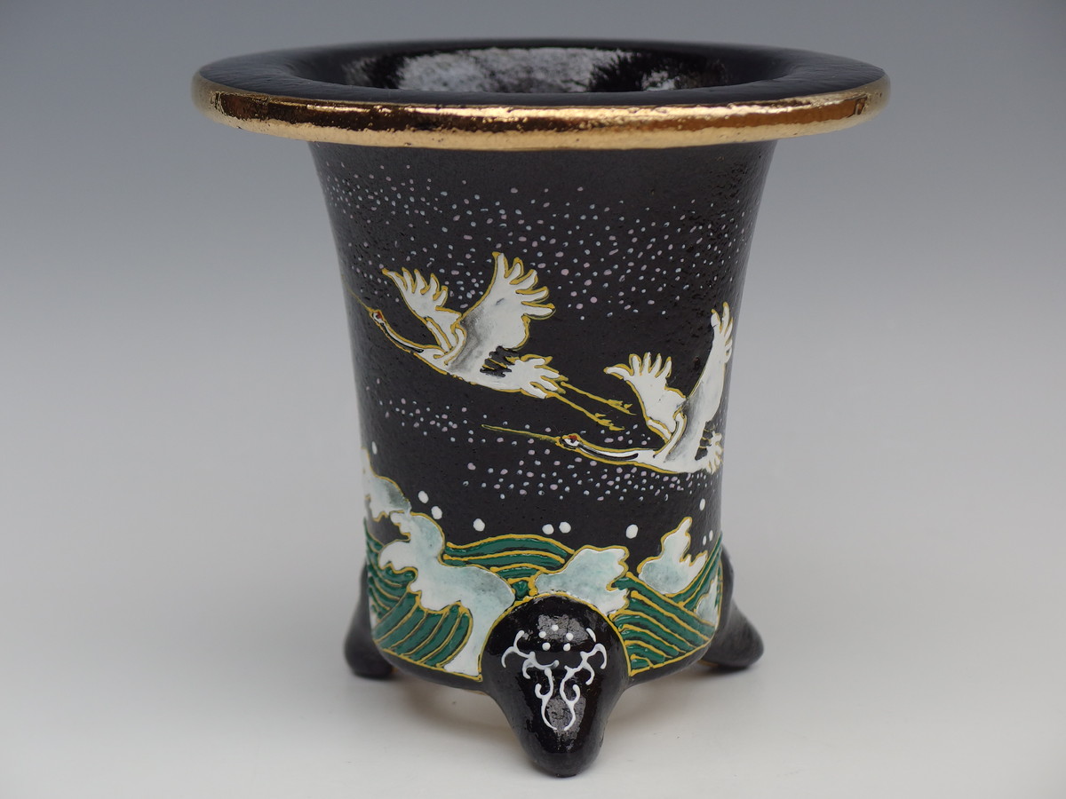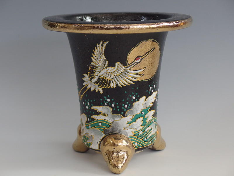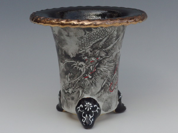 3085,五龍大太鼓 万年青楽鉢 外形約12.4cm 梅花サイン 新鉢