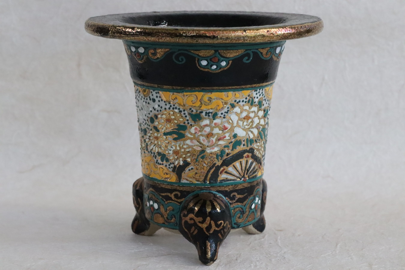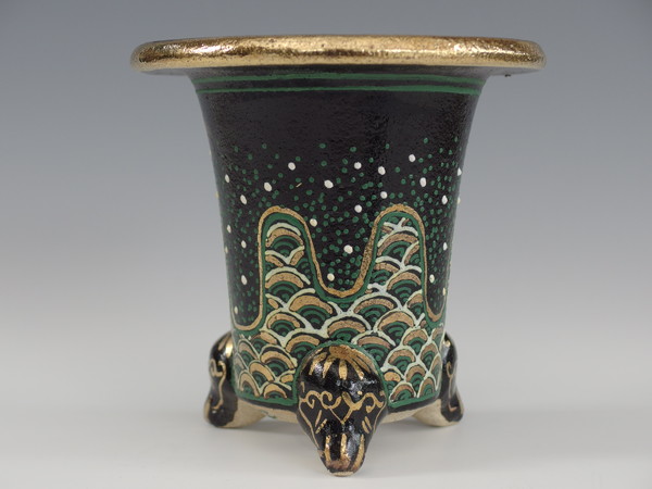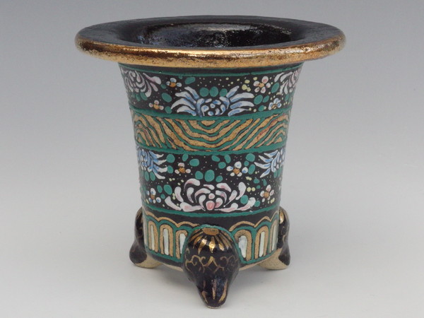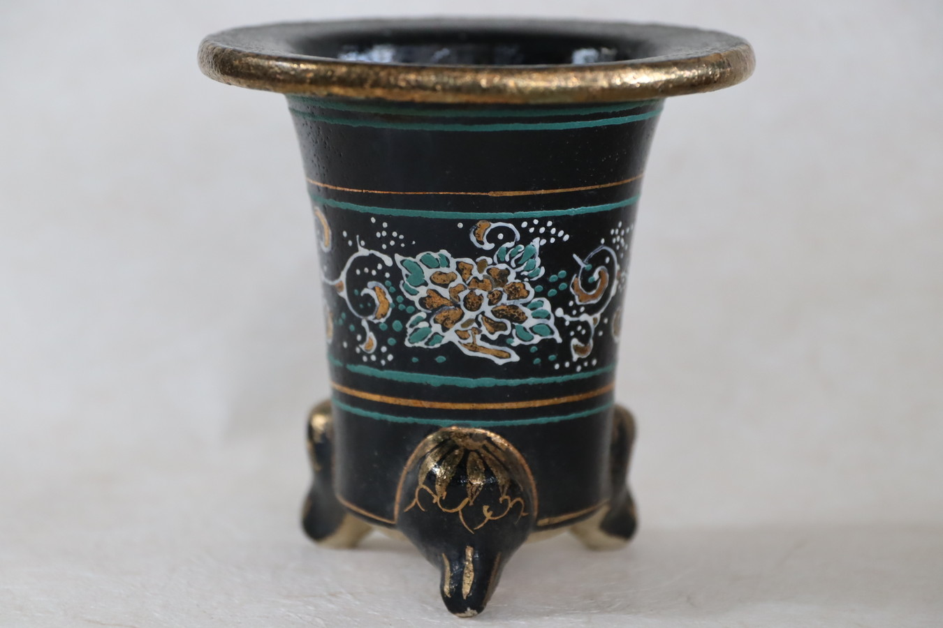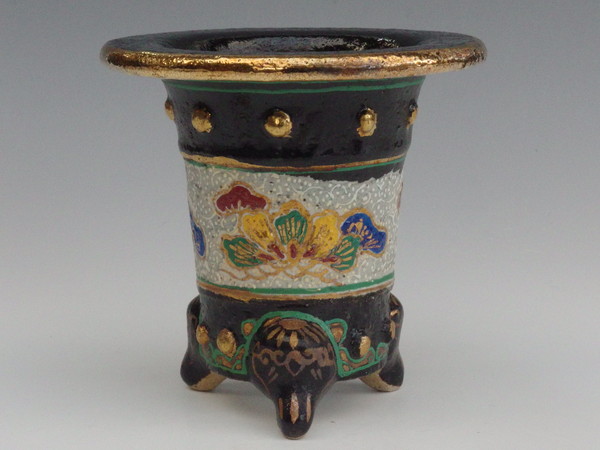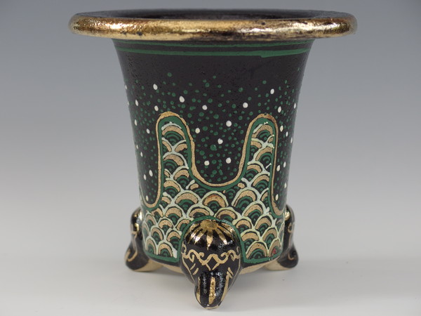 2272, 古代万年青鉢写し楽鉢 外形約10.5cm 中古 一水絵 カケ 送料無料