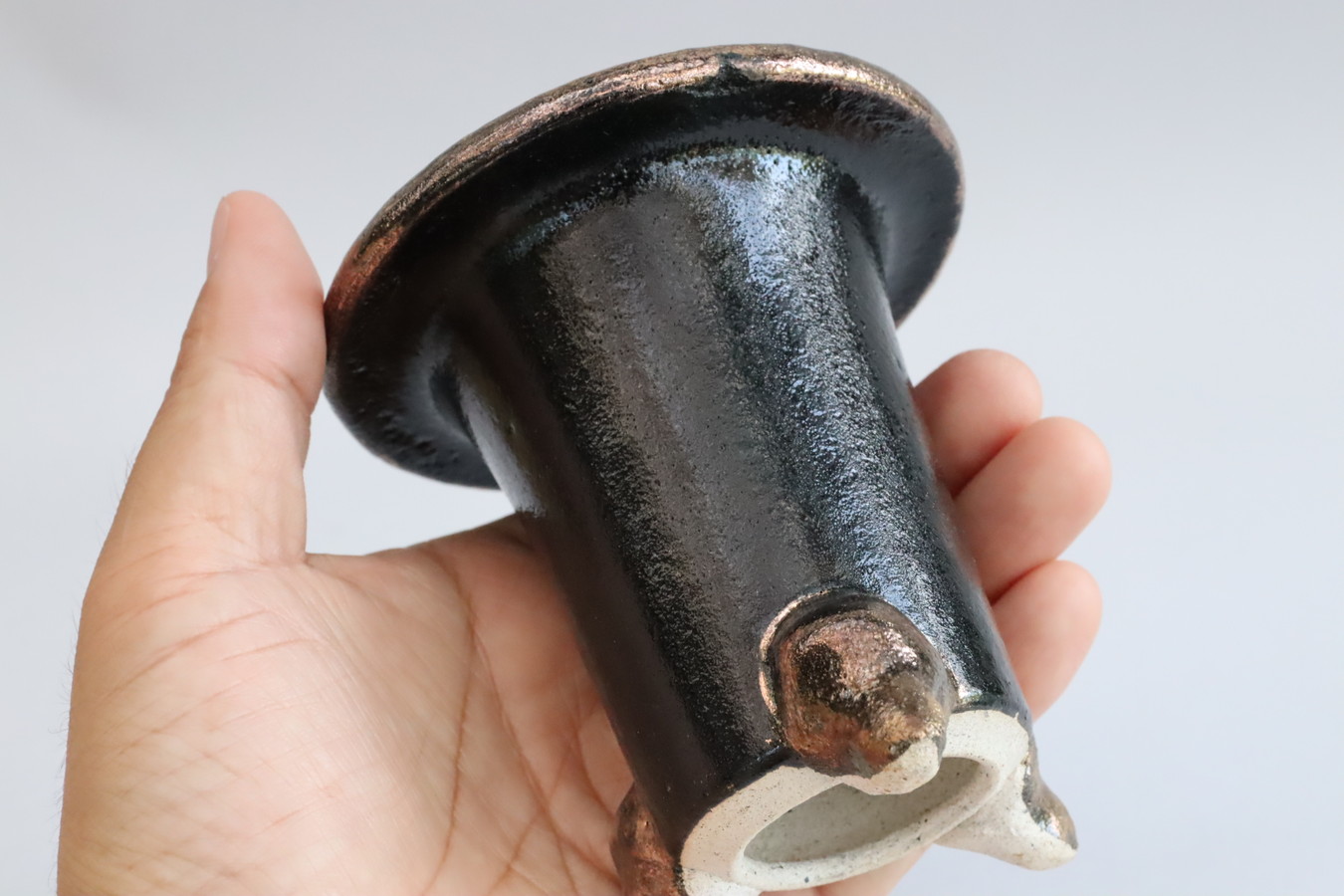 2061,古鉢 楽鉢 外径約8cm 高さ約5.3cm 加茂黒はさみあと 中古 ワレ 古く素晴らしい ※金継の練習台??