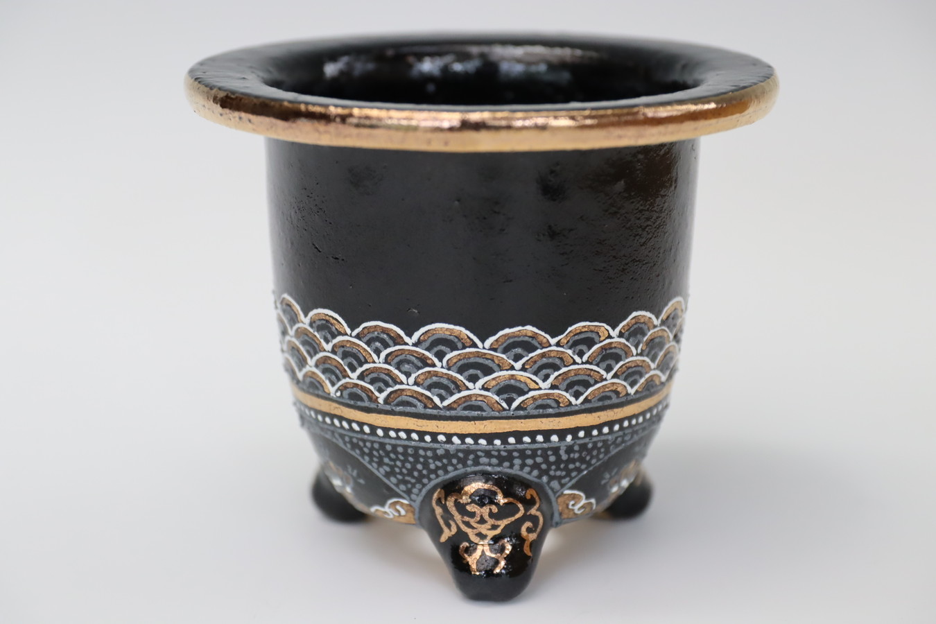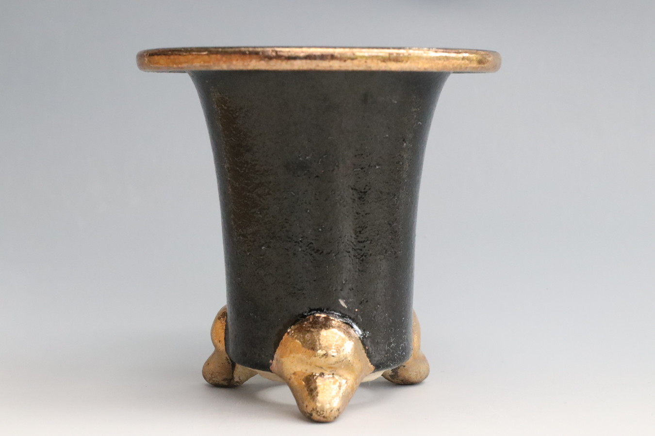 2637,NHK撮影で使用 縁足金萬年青楽鉢 外径約9.8cm 中古
