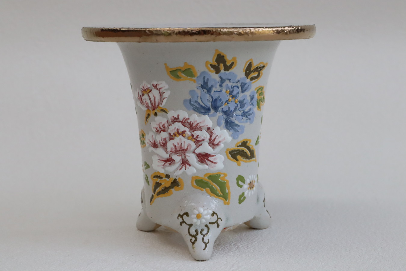 2265,吉祥唐草 萬年青錦鉢 外径約10.7cm 梅花サイン これだけの線の細さはない