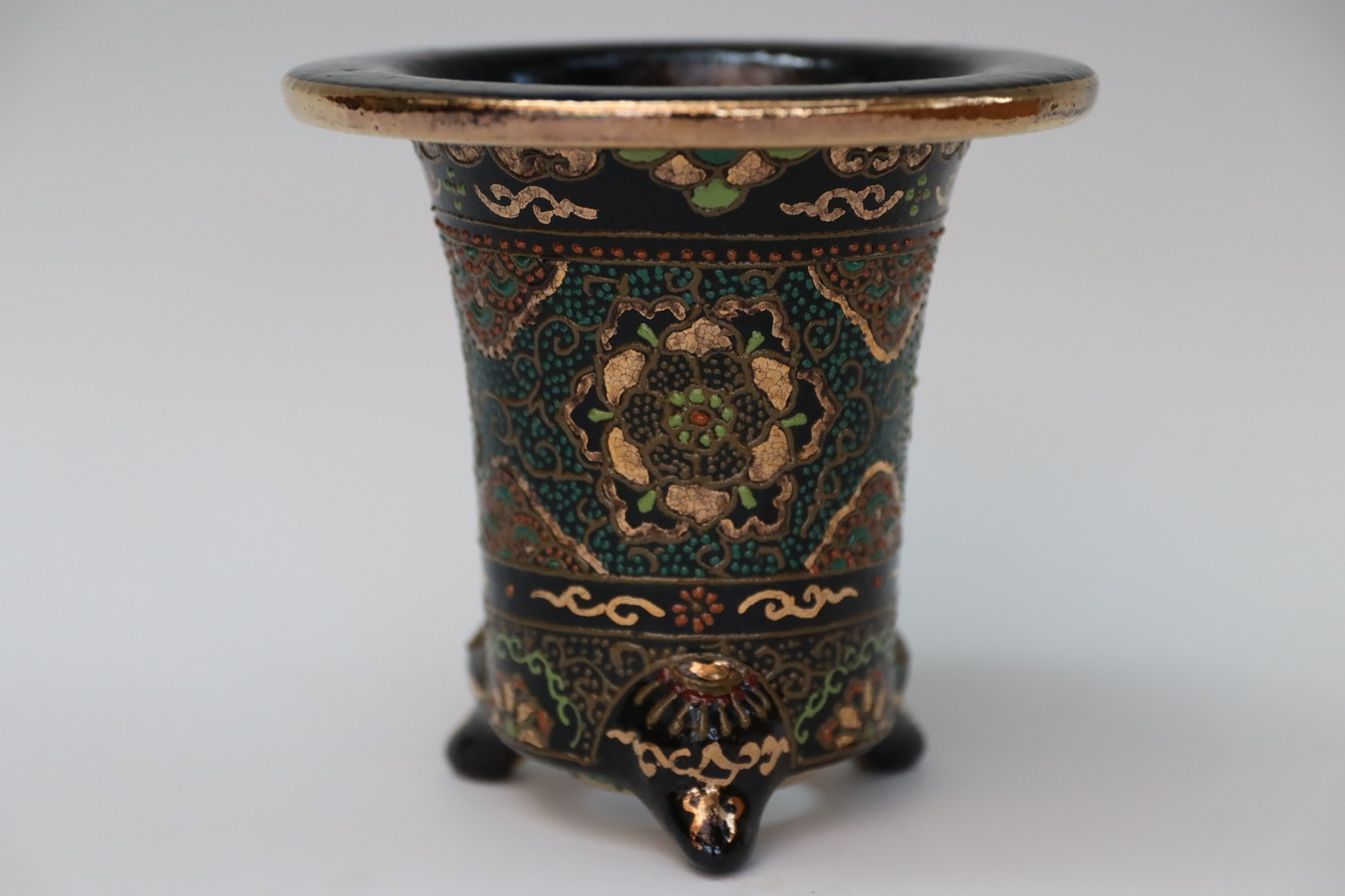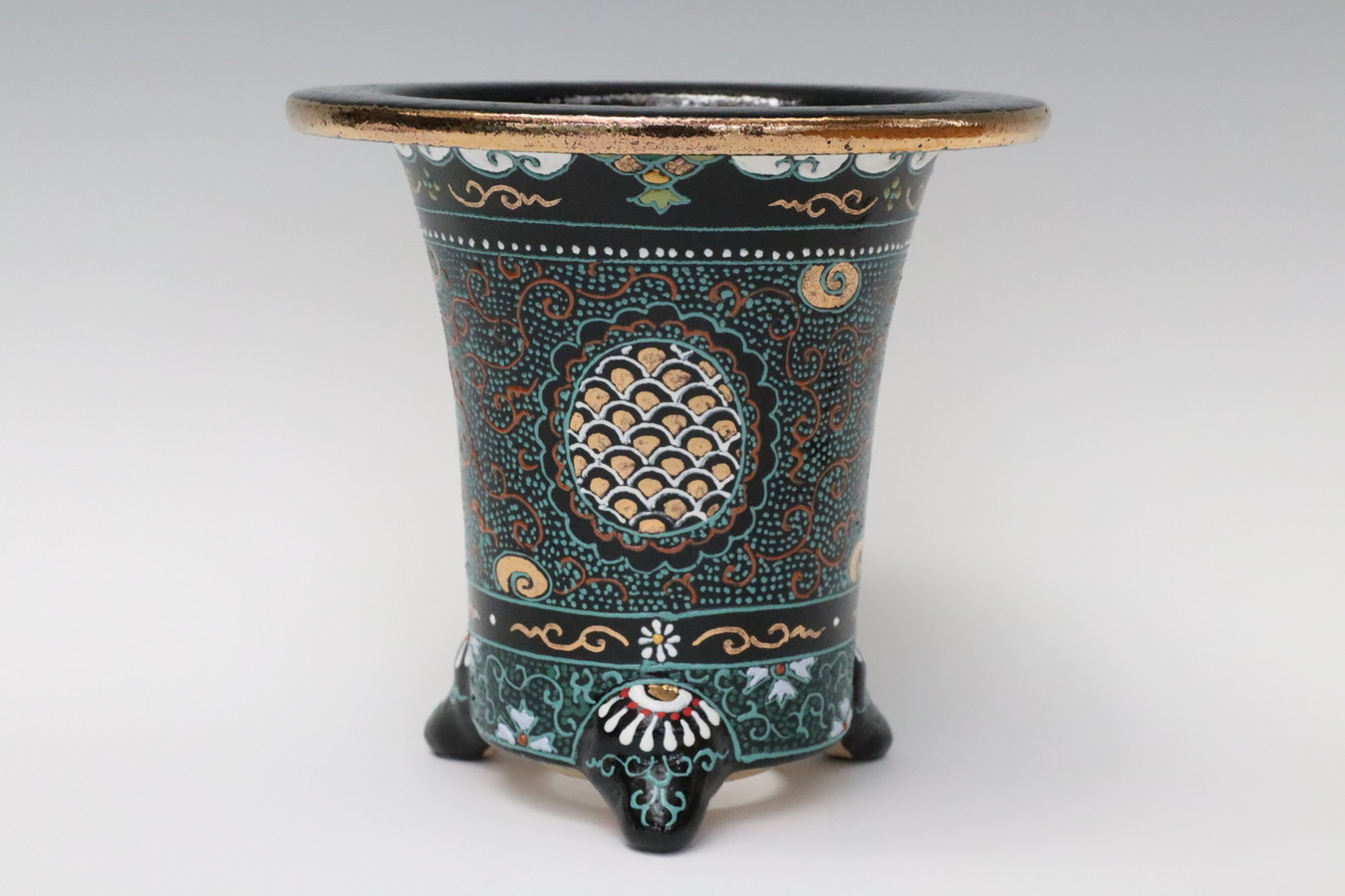 2081,七宝唐草吉祥 萬年青楽鉢 外径約11.1cm 梅花サイン