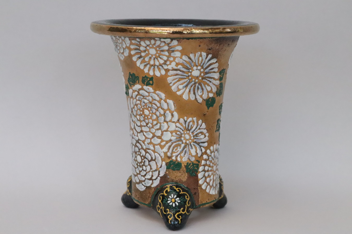 2084,亀甲 菊、尾花、萩 万年青鉢 外径約10.4cm 梅花サイン
