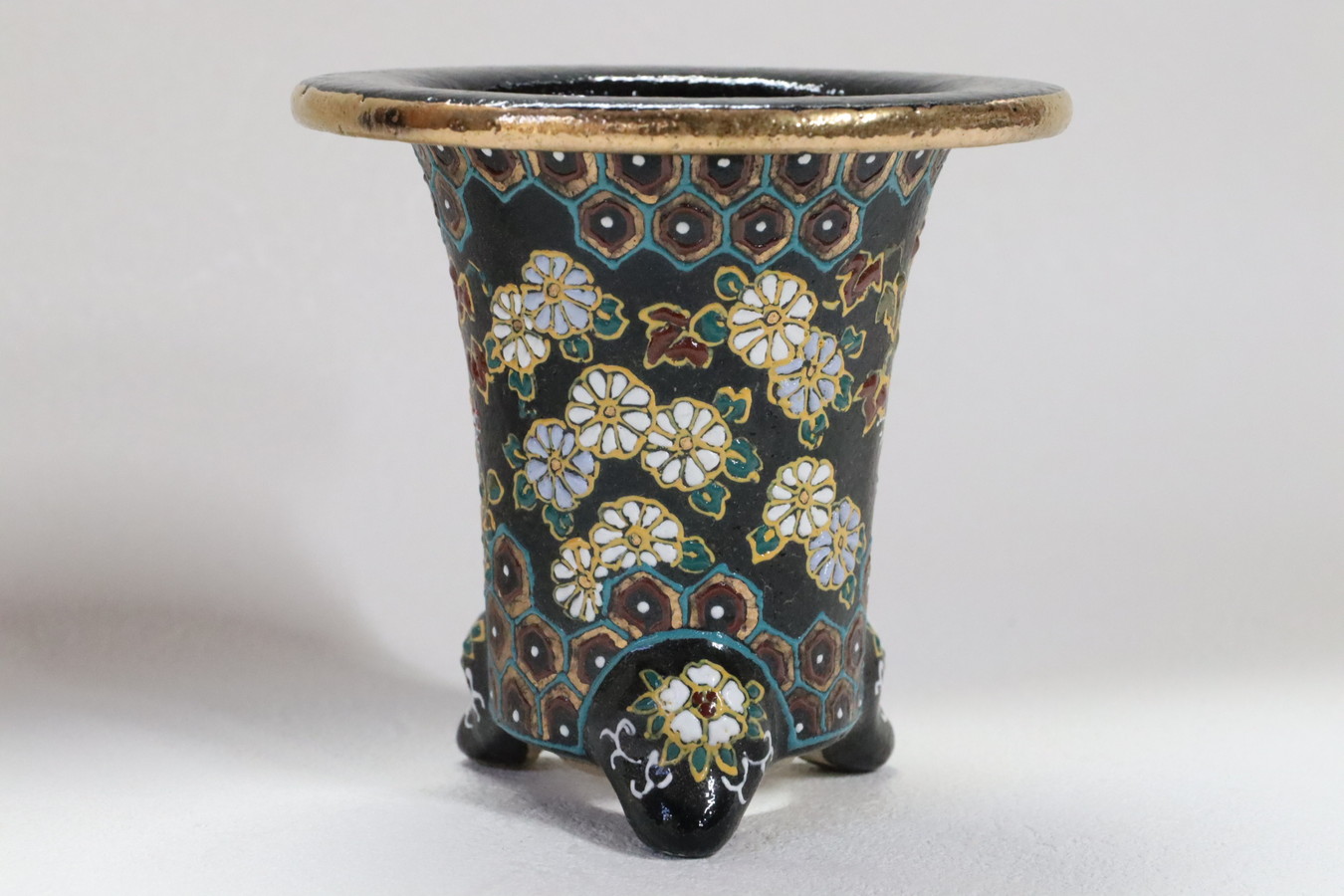 2262,扇面亀甲 華唐草 萬年青錦鉢 約10.3cm 梅花サイン 少し古いもの 特価!!!